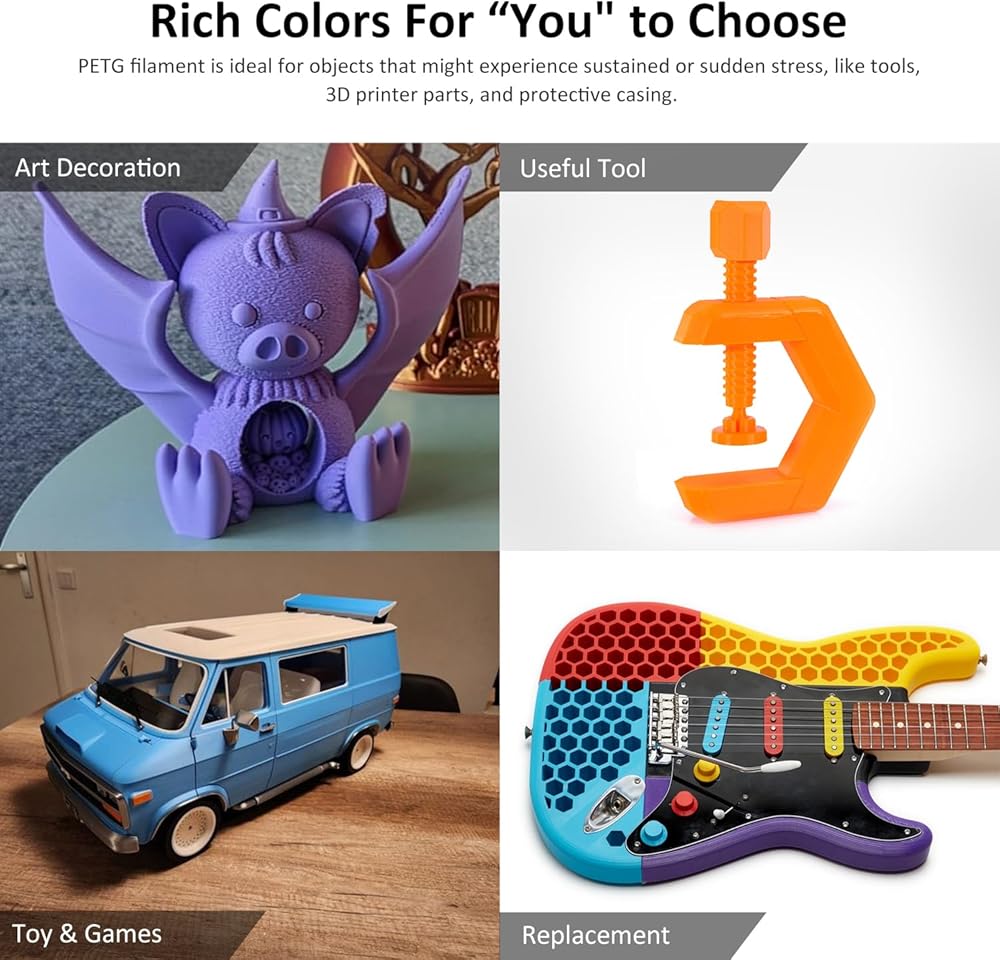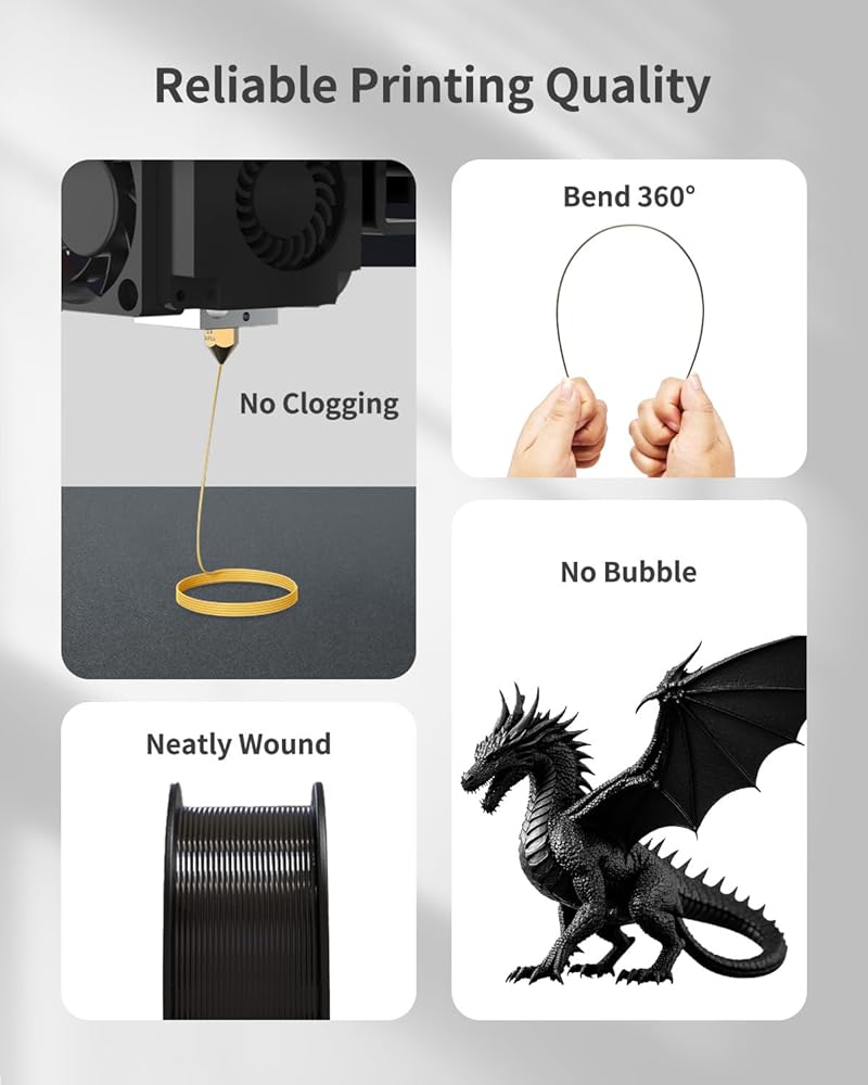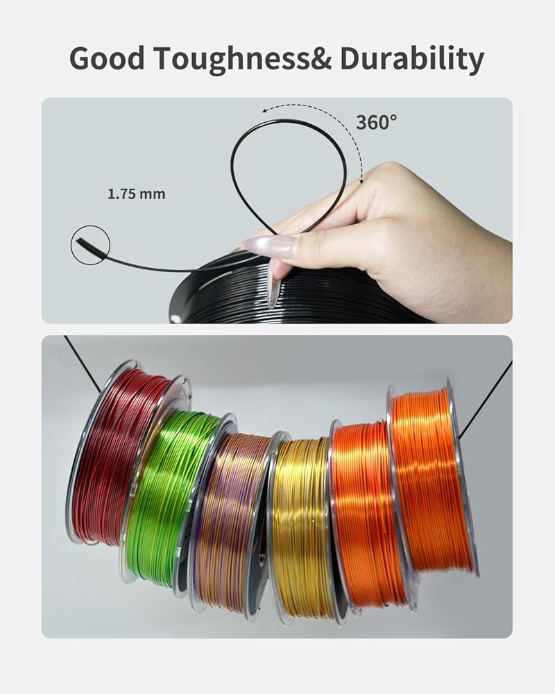 Tougher & More Durable: Our silk PLA filament has excellent layer adhesion, preventing warping and providing a stable foundation resulting in strong and durable prints.