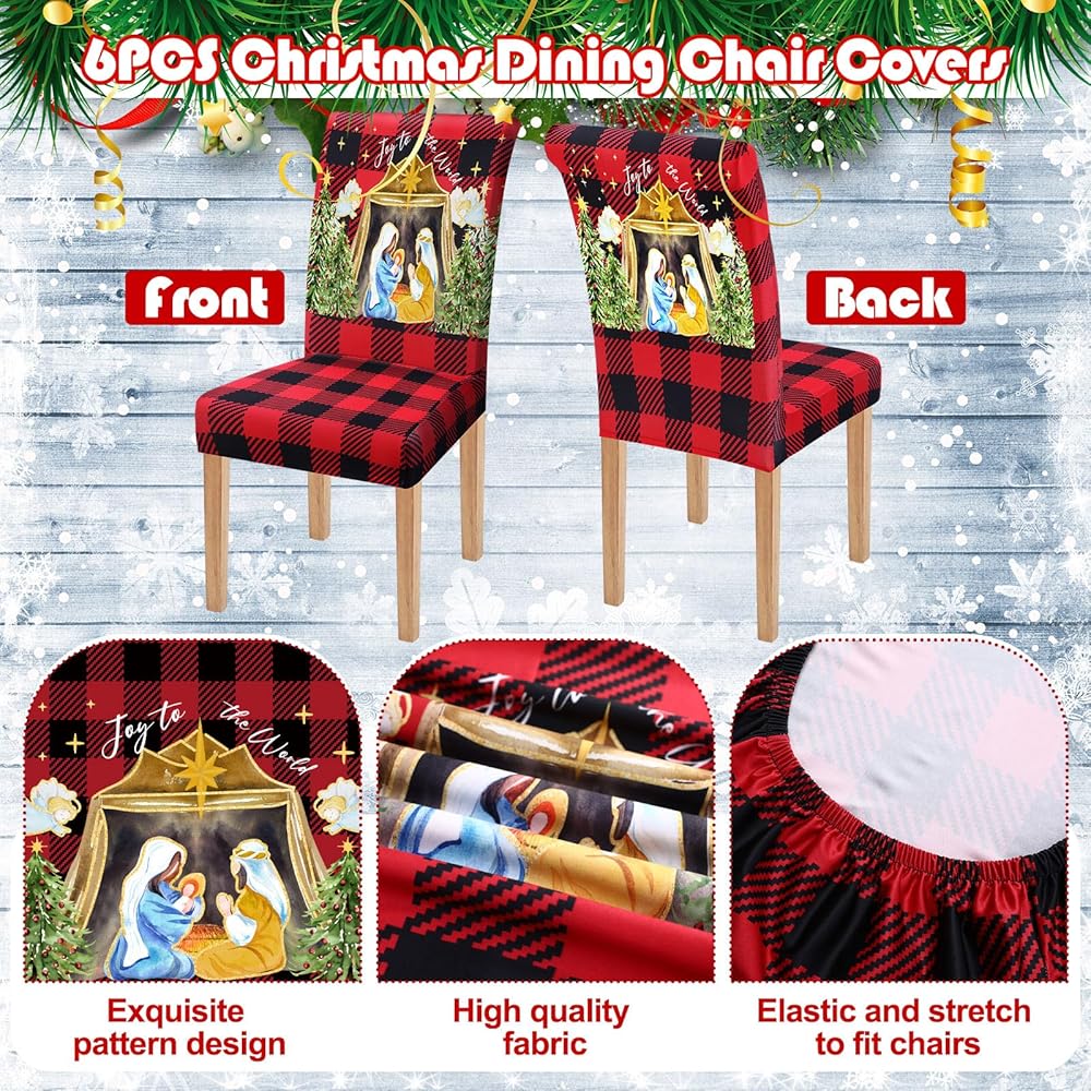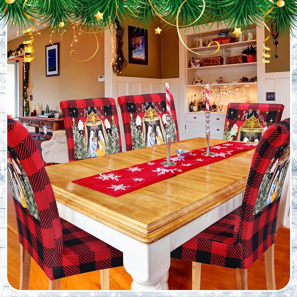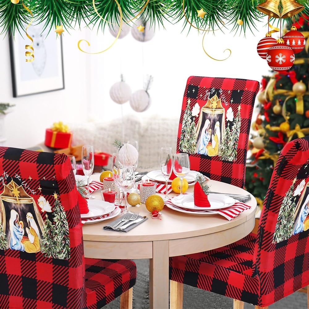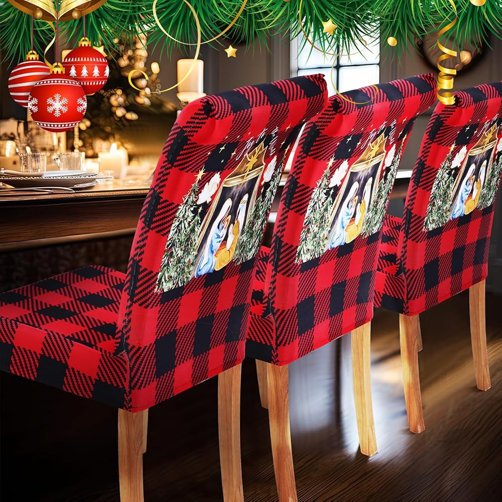 While the buffalo plaid nativity style is nice for Christmas, it's versatile enough for other occasions too. Whether it's a family gathering, holiday party, or just a regular dinner, these chair covers will meet your needs.