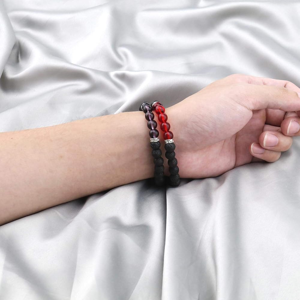 8pcs Lava Stone Bracelets Set (Note: Other accessories are not include.)