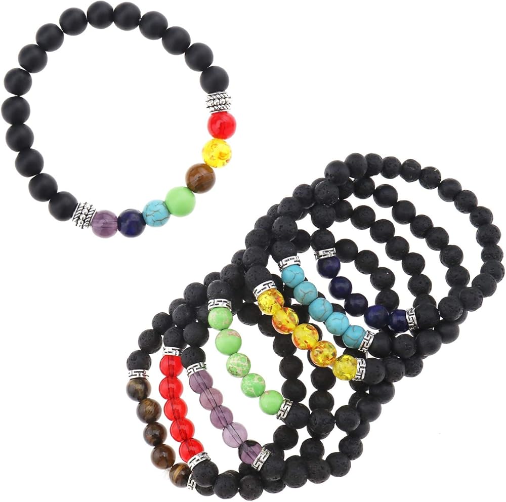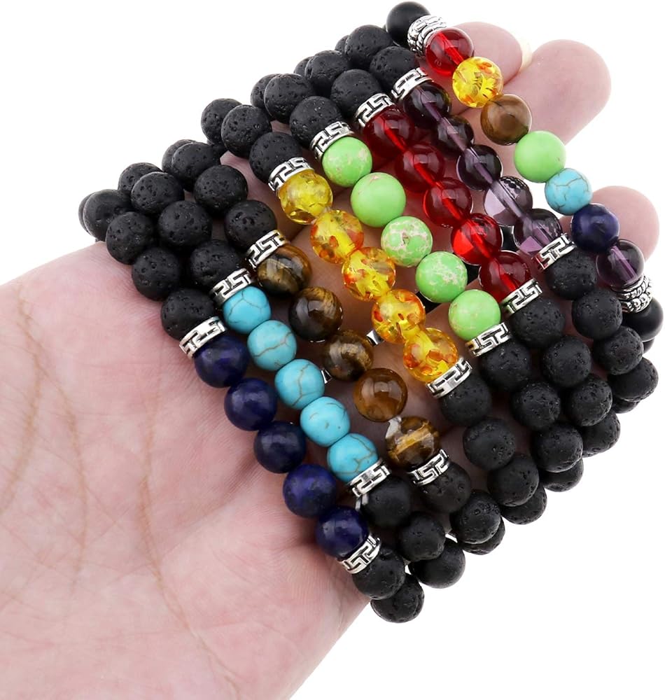 • [Package]: 10pcs natural lava stone bracelet set, includes 7pcs solid colors and 1pcs colorful one.