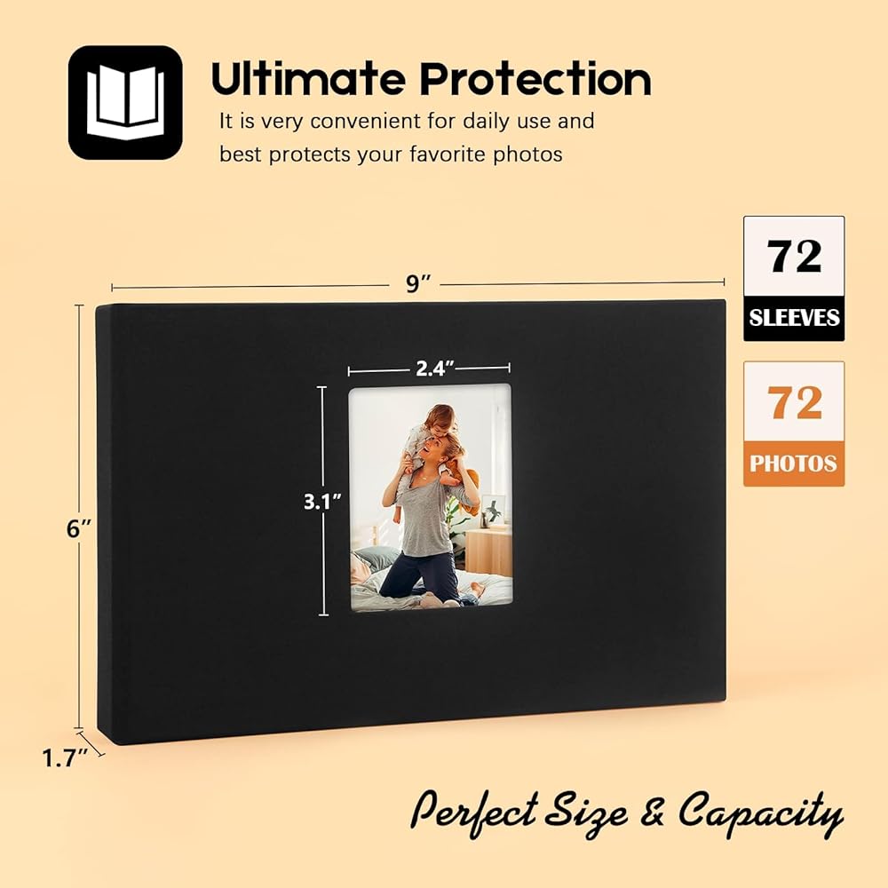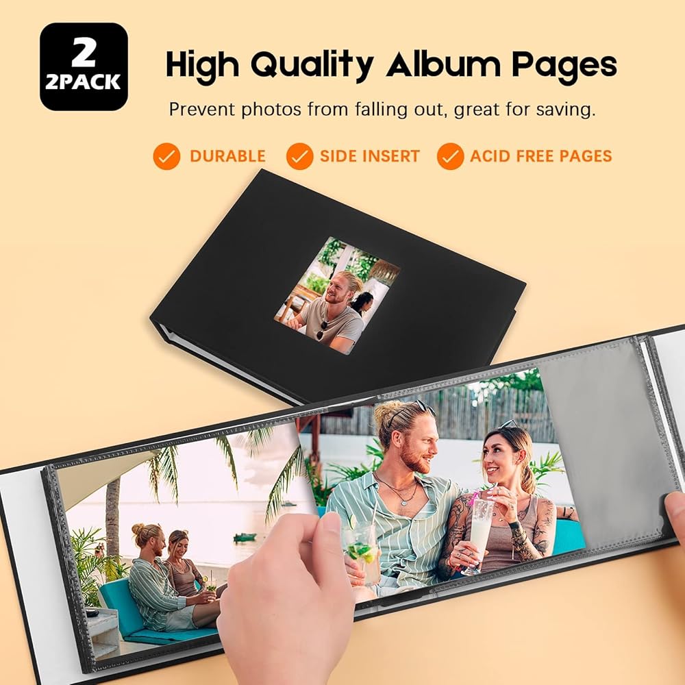 حزمة من 2 ألبوم صور مقاس 5x7 - كل كتاب ألبوم صور مقاس 5x7 يحتوي على 36 صفحة داخلية سوداء يحمل 72 صورة أفقية مقاس 5x7