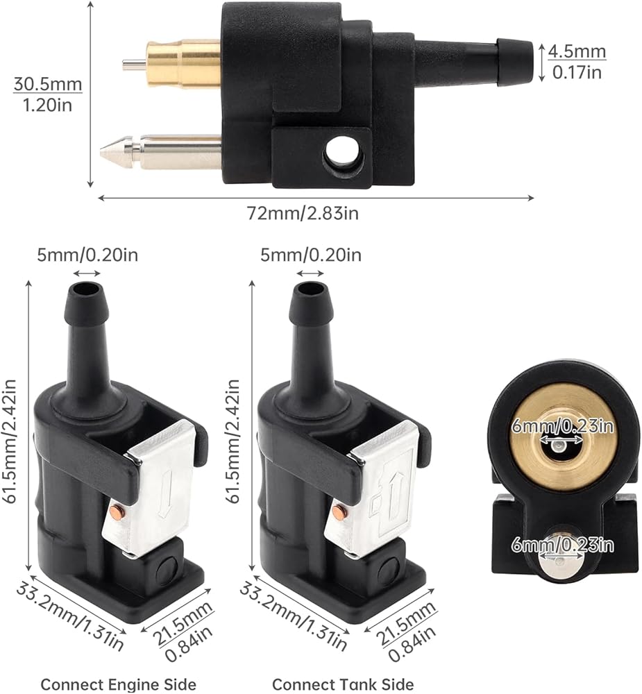 - The connect size is 6mm, not 3/8 inch, and it fits the outboard models with 6mm(1/4 inch) fuel line.