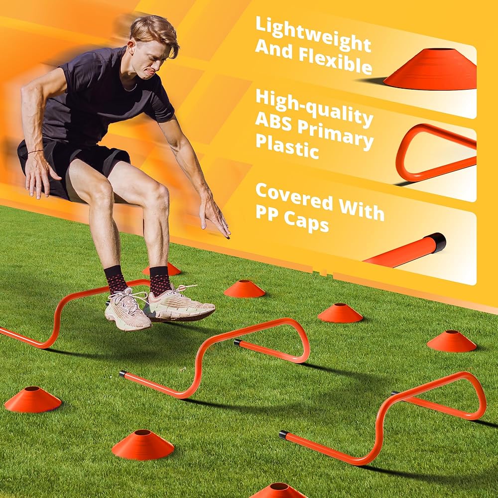 أداء رياضي أفضل: إن معدات التدريب على سرعة سلم الرشاقة الخاصة بنا مريحة للرياضيين في مجموعة متنوعة من الألعاب الرياضية، بما في ذلك كرة القدم وكرة القدم وكرة السلة والهوكي واللاكروس والتنس وكرة الريشة. بغض النظر عن مستوى رياضتك أو لياقتك البدنية، فإن معدات التدريب على سرعة سلم الرشاقة لدينا يمكن أن تساعدك على تحسين أدائك. فلماذا الانتظار؟ ابدأ التدريب وشاهد النتائج بنفسك!