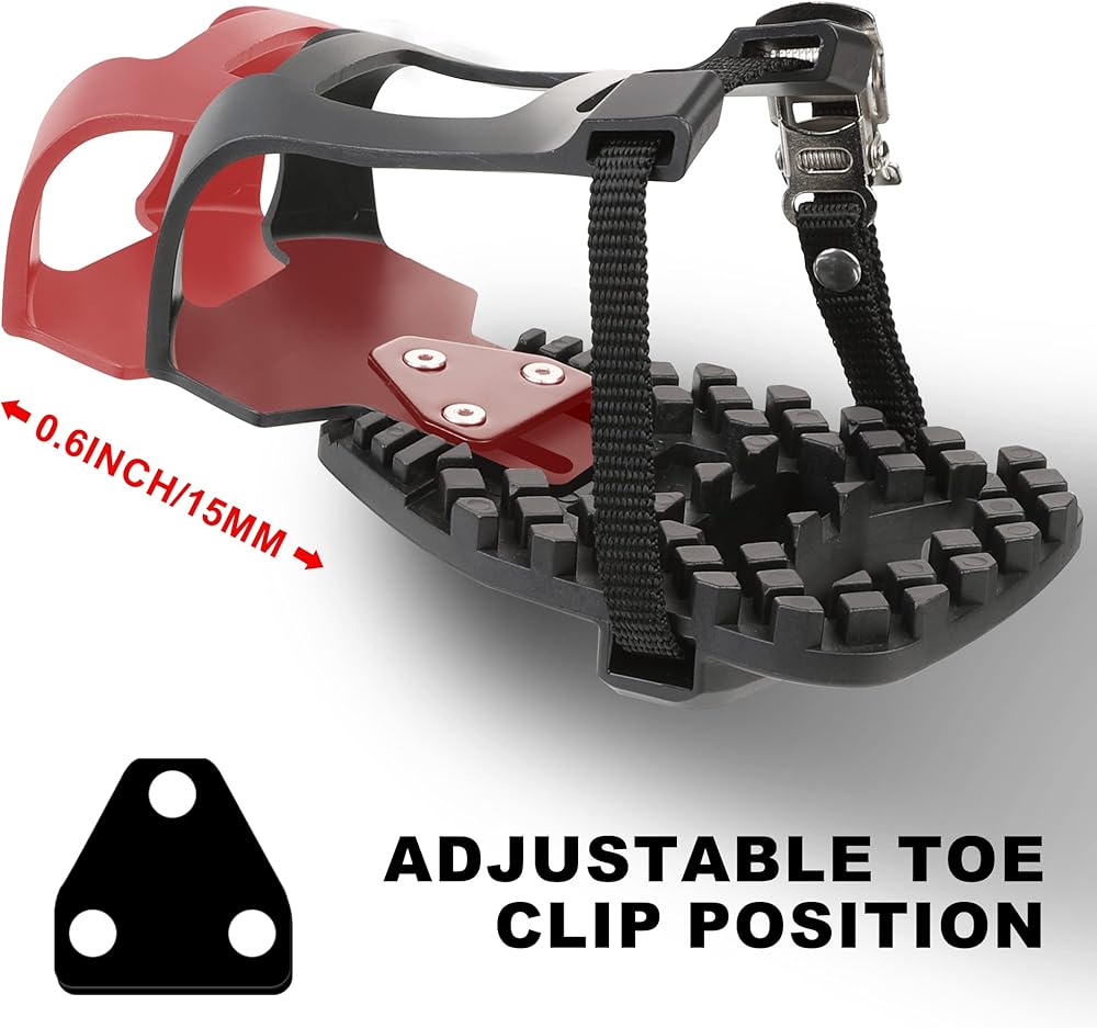 آمن وفعال - الأشرطة القابلة للتعديل لتأمين قدمك، يمكنك إدخال حذائك الرياضي بالداخل بشكل مريح بحيث تحيط الأقفاص بقدميك، مما يمنع القدم من الانزلاق عن الدواسات، مما يزيد من كفاءة الدواسات.