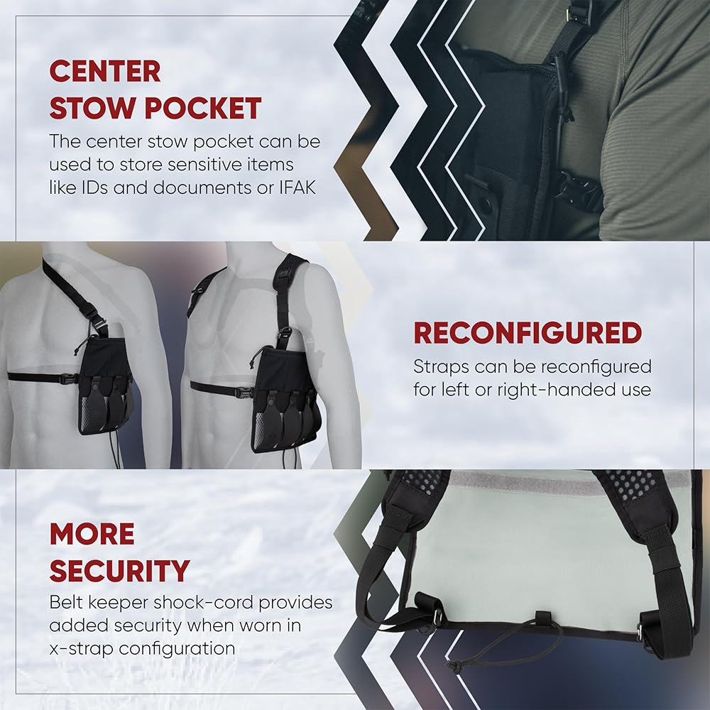 You can't always spare the space or weight it takes to pack for multiple mission profiles so when it comes to loadout the Firebase Bandolier is the versatile solution you need. Worn either under the right or left arm like a shoulder holster, diagonally across the body like a bandolier, attached to the front of your plate carrier, or deployed from your bag for off-body carry, the Firebase Bandolier allows up to four mags with the ability to configure access either from the top or bottom. Each mag cell has silicon printing for extra retention and the centerline pocket is Tactigami compatible and a great place to store maps, documents or an IFAK. Designed for concealment under shirts or jackets the low-profile shoulder and waist straps secure the bandolier without adding bulk. A multifunctional, multiple carry platform, the Firebase Bandolier is an expert addition the Prepared Professional's arsenal.