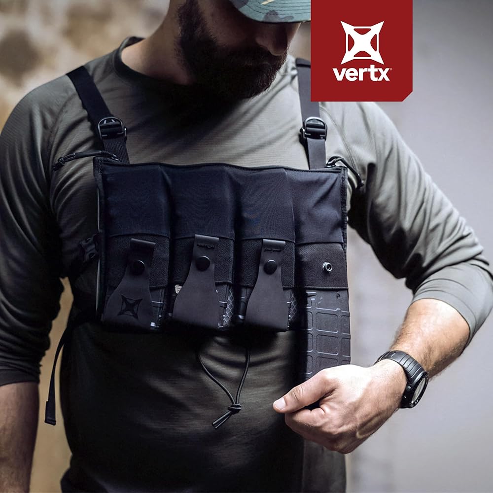 Pouches can be oriented faceup or facedown for faster reloading