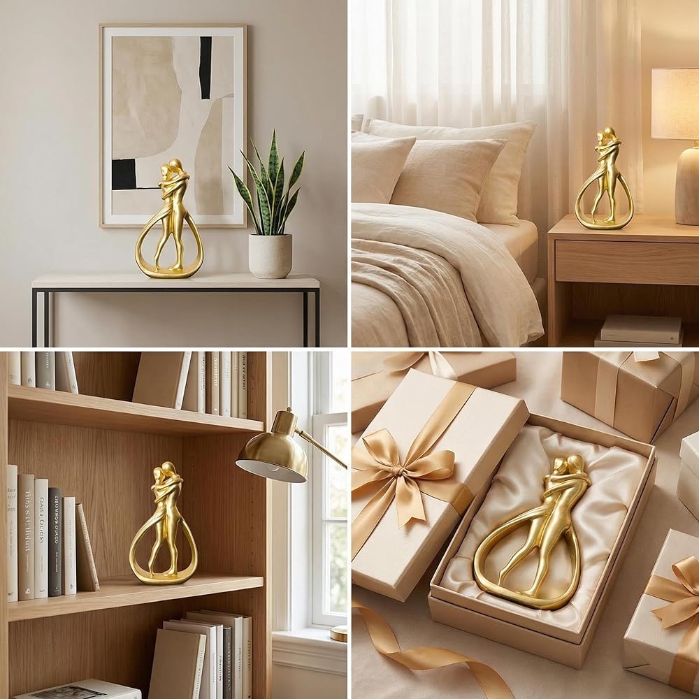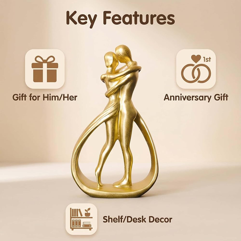 الشمال عيد الحب 5.2 بوصة الراتنج الذهبي الحب تمثال رومانسية أنيقة زوجين النحت ديكور المنزل الرف تمثال الهدايا