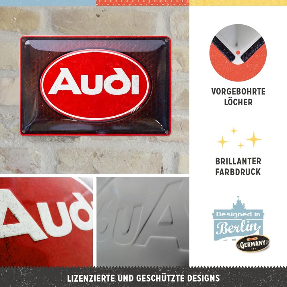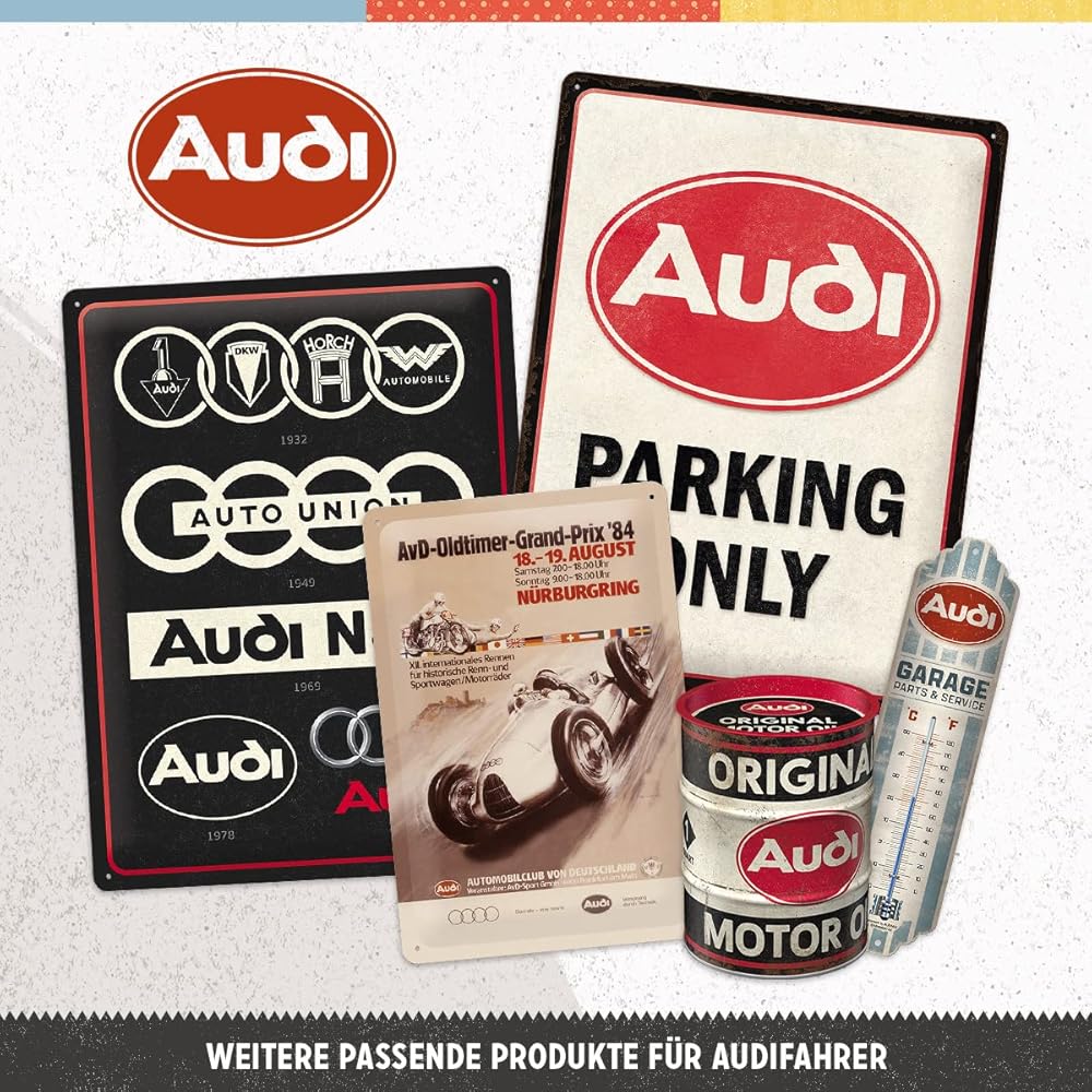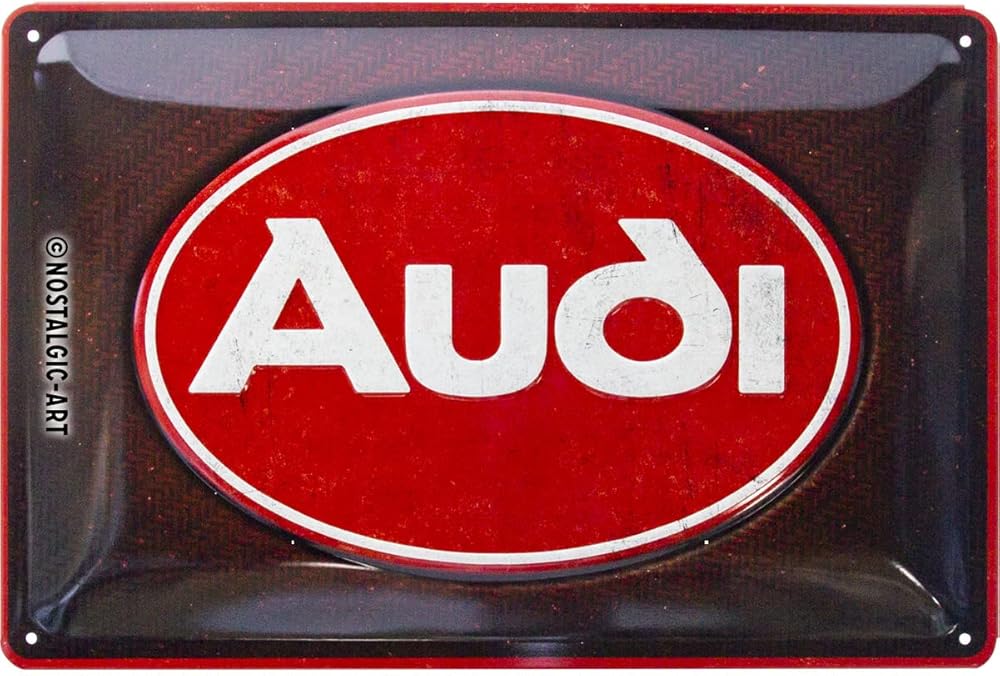 لافتة قصدير كلاسيكية من Nostalgic-Art، مقاس 7.9 بوصة × 11.8 بوصة، أودي - شعار أحمر لامع - فكرة هدية لمحبي إكسسوارات السيارات، لوحة معدنية، تصميم عتيق لتزيين الجدران