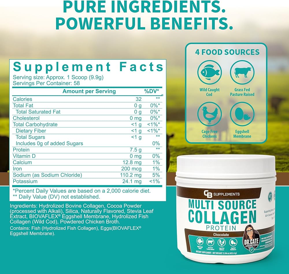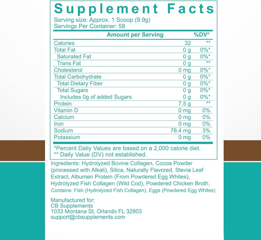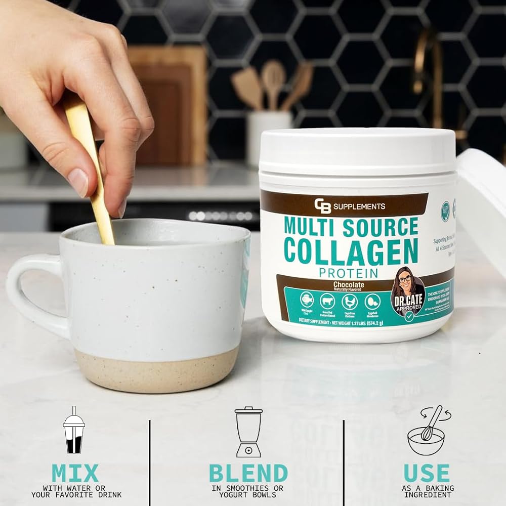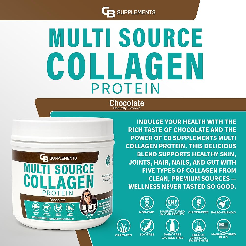 Indulge in the smooth, delicious taste of CB Supplements Vanilla Multi Collagen Protein Powder, a premium blend providing five types of collagen (I, II, III, V, & X) from hydrolyzed bovine and marine sources. This unique formula offers full-body support, promoting healthy joints, bones, skin, and hair while ensuring maximum benefits with every scoop. Enjoy the natural vanilla flavor, sweetened with stevia, making it a delightful addition to water, coffee, smoothies, or yogurt. Whether you're on the go or enjoying a quiet morning, this versatile powder blends easily into any beverage or snack. Free from sugar, artificial sweeteners, and carbs, our vanilla protein collagen powder fits seamlessly into your wellness routine without the guilt. Loaded with hydrolyzed collagen peptides, it supports skin elasticity, joint mobility, and stronger hair while improving overall vitality. Easy to use and mix, it's perfect for maintaining your daily collagen intake with a flavor you'll love.