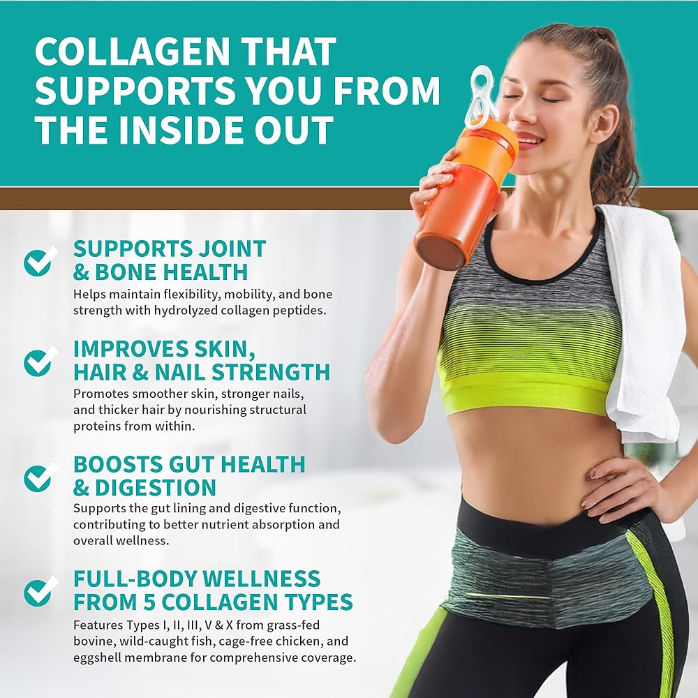 • Supports Skin, Joints & Hair – Packed with needed collagen peptides powder, it supports skin elasticity, joint health, and stronger hair, giving you the ultimate benefits of hydrolyzed collagen peptides.