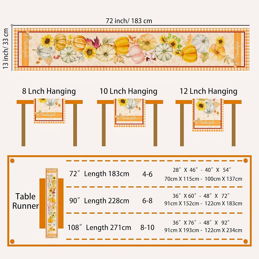 【Size】 The fall table runner is 13 x 72 inches (33 x 183 cm), suitable for tables of 4 to 6 people.