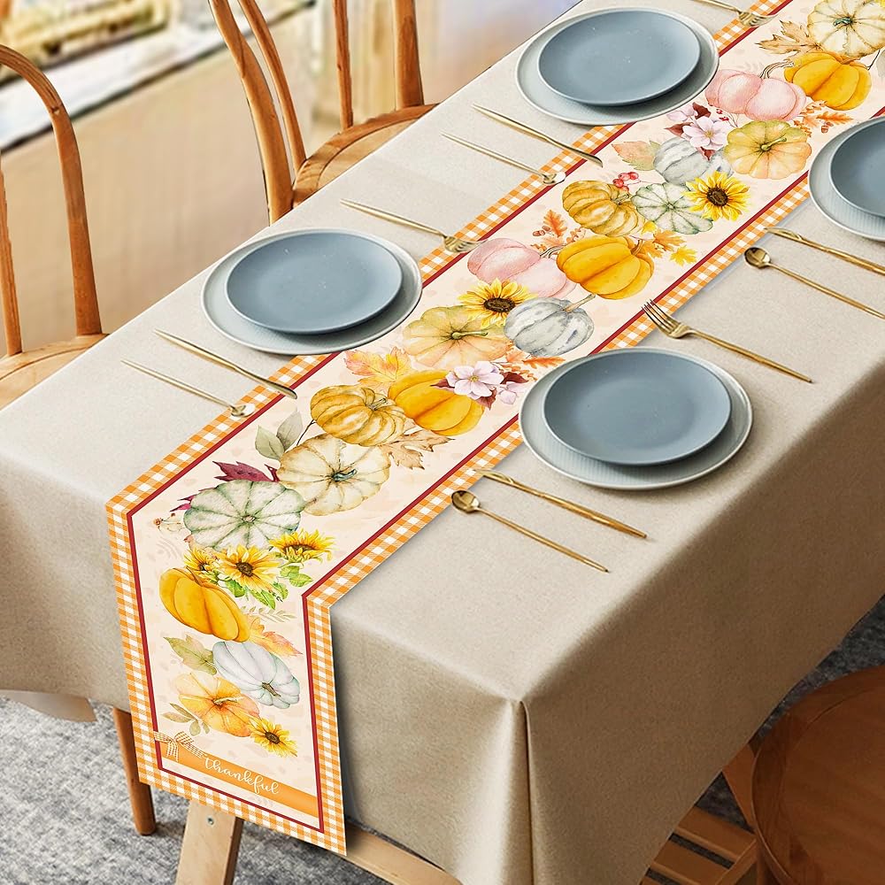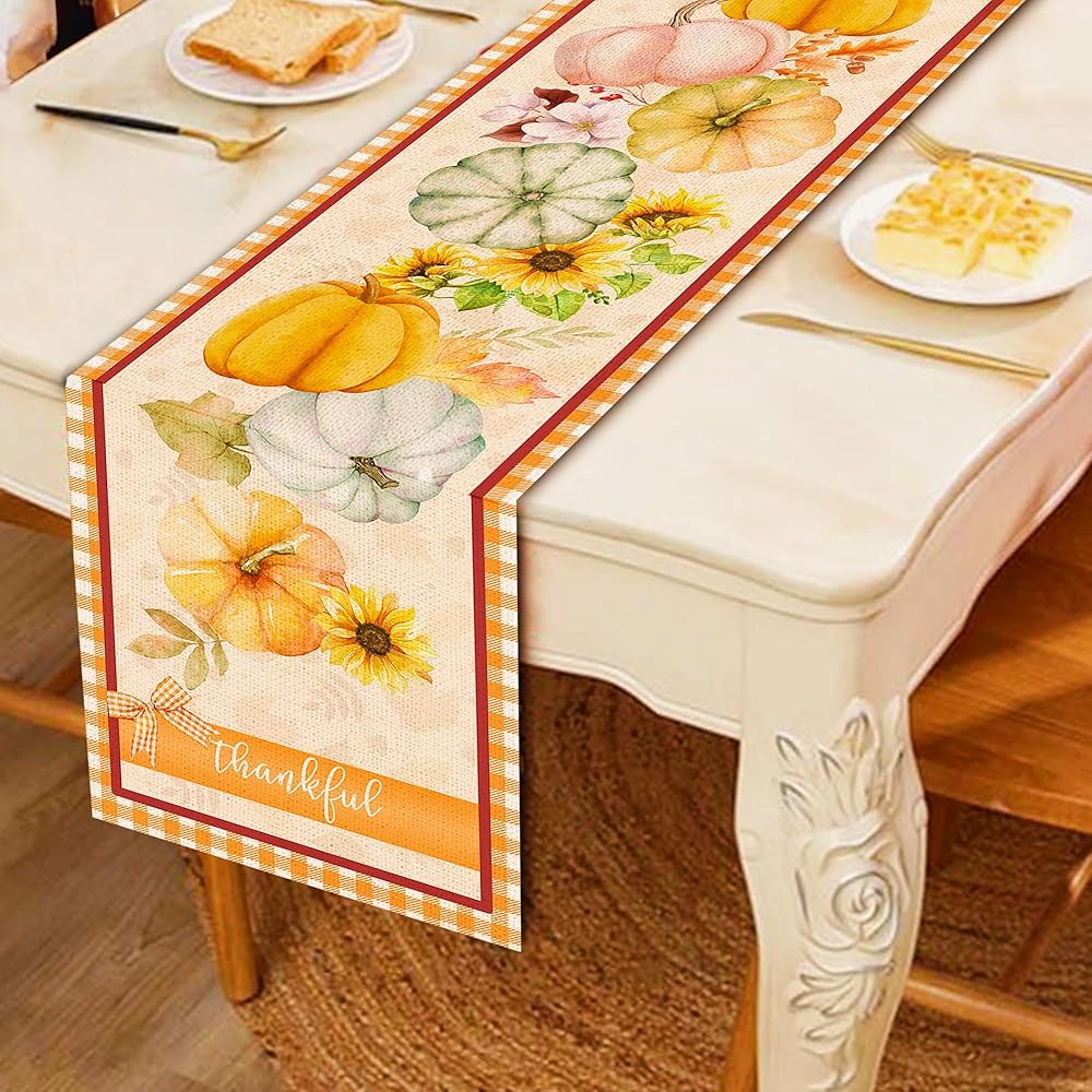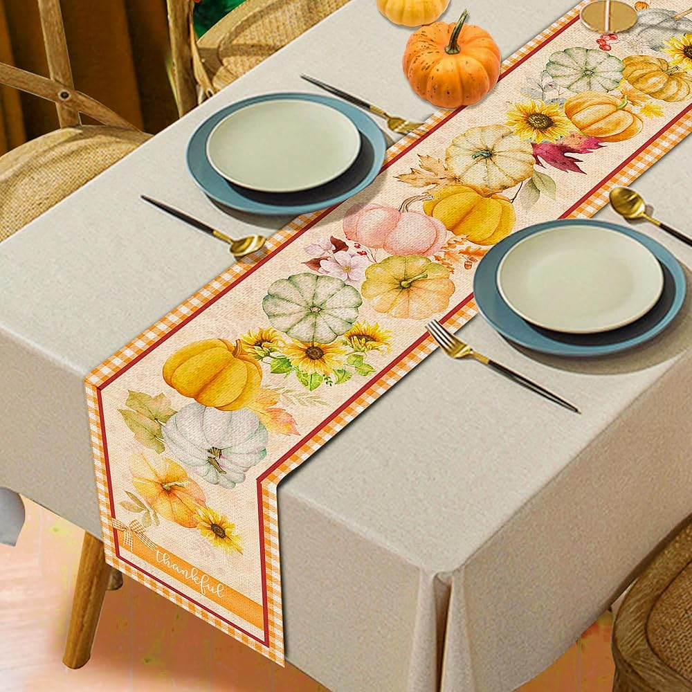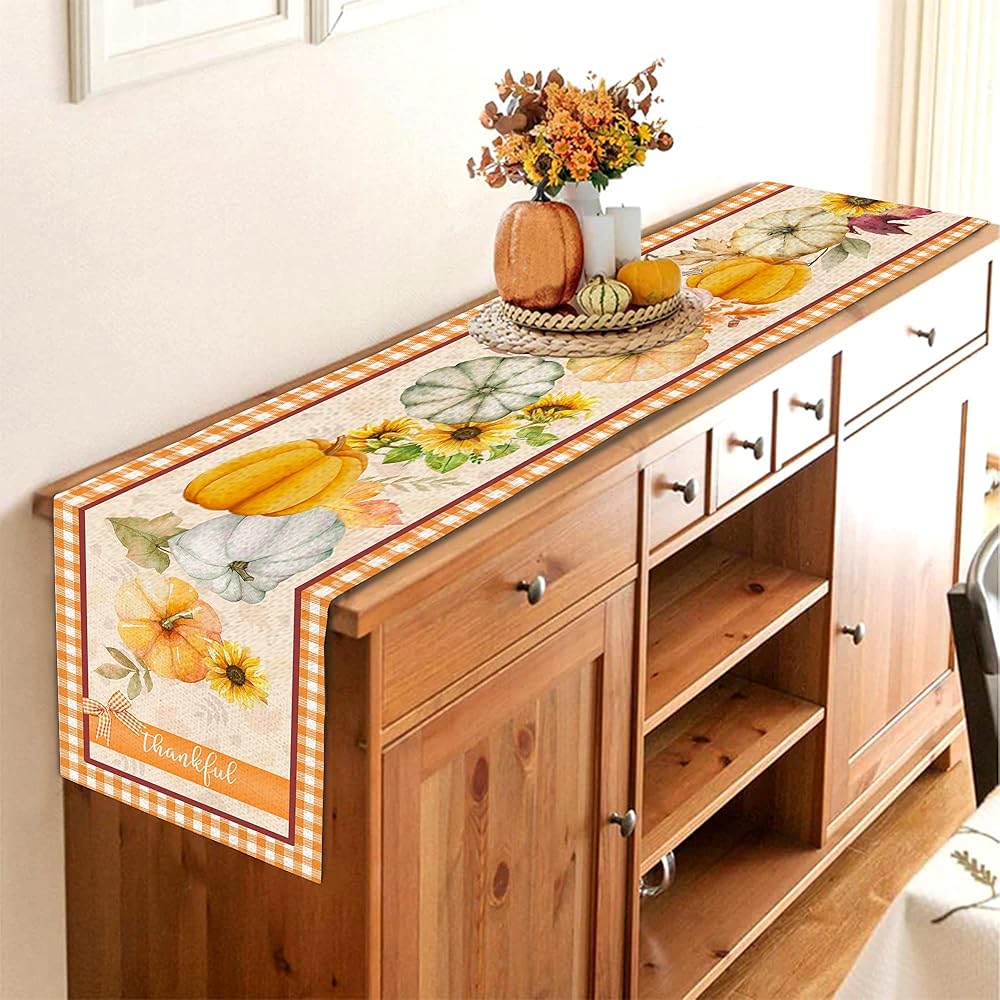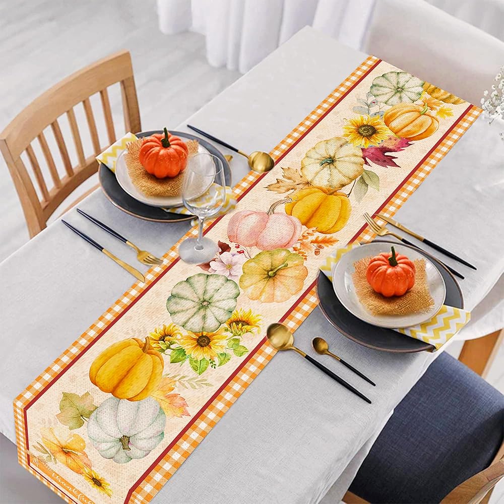 【Material】 The fall pumpkins table runner is made of 100% linen fabric, reusable without fading.