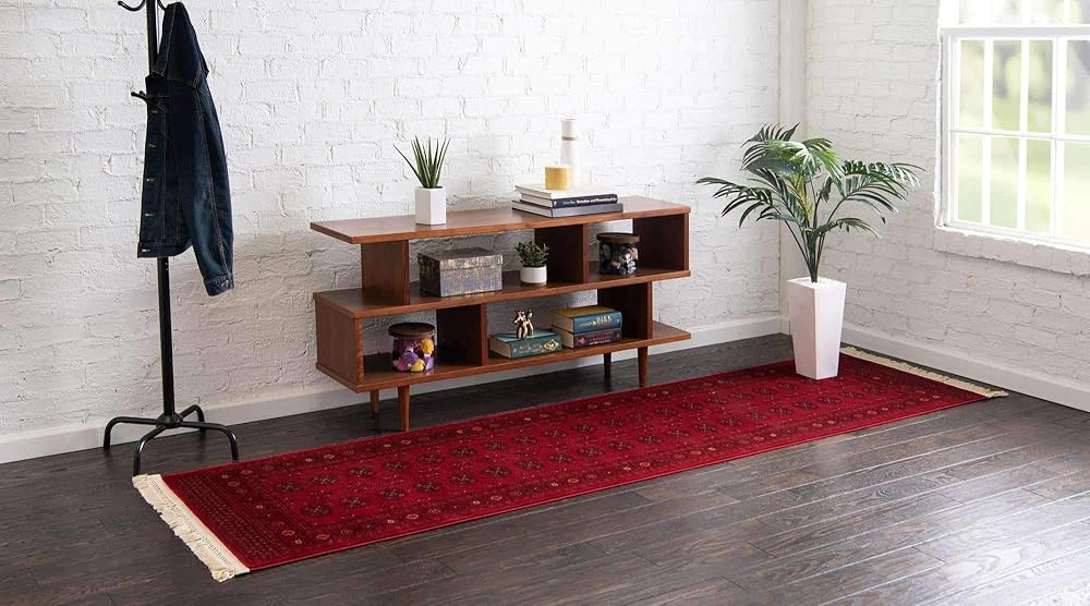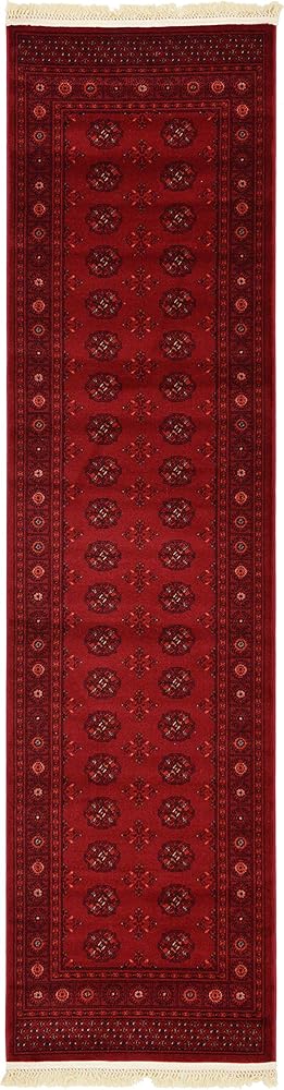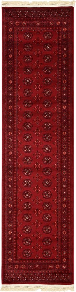 Size in FT: 2' 7 x 10' 0 - Size in CM: 80x305 - Pile Height & Thickness: 1/3" - Colors: Red, Burgundy