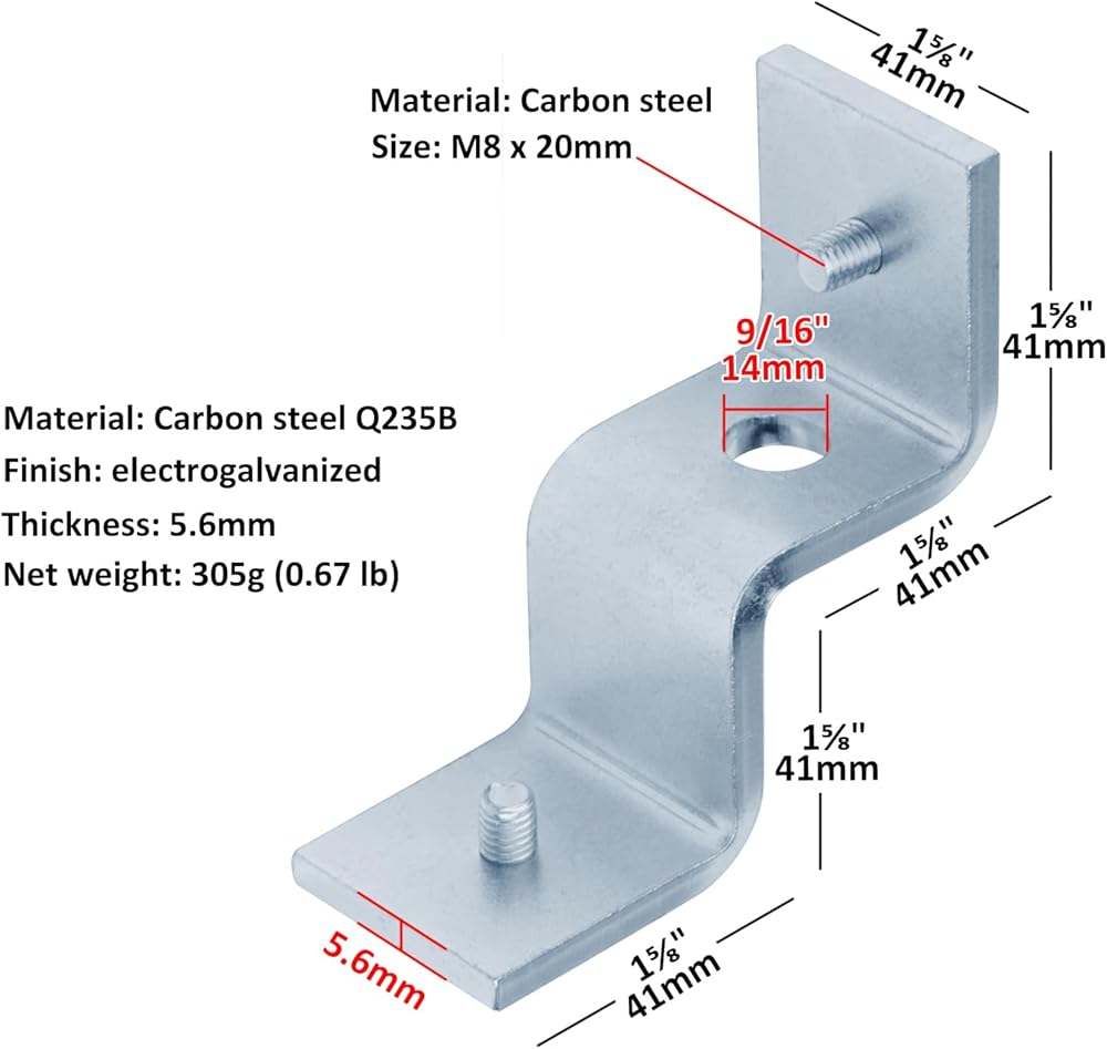 6 قطع Z دعامة زاوية مناسبة لقناة تبختر 1-5/8، تقبل مسمار 1/2 بوصة، سمك 5.6 مم