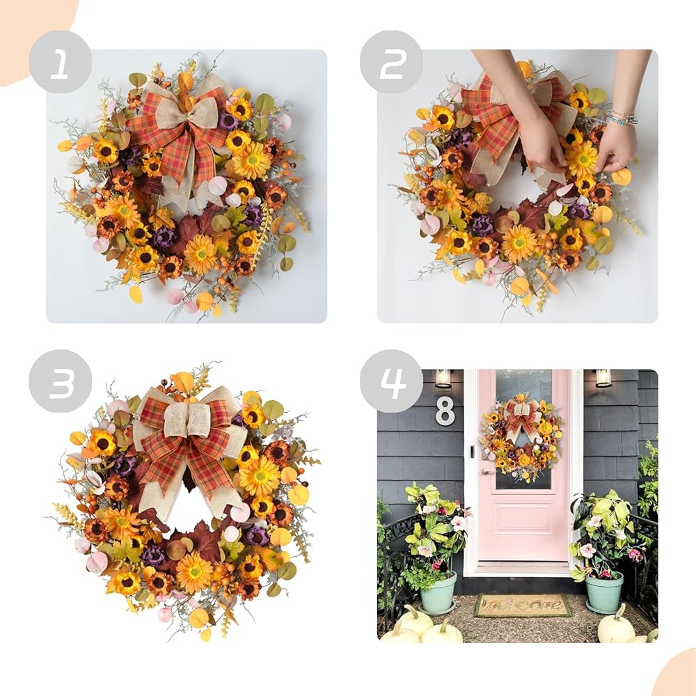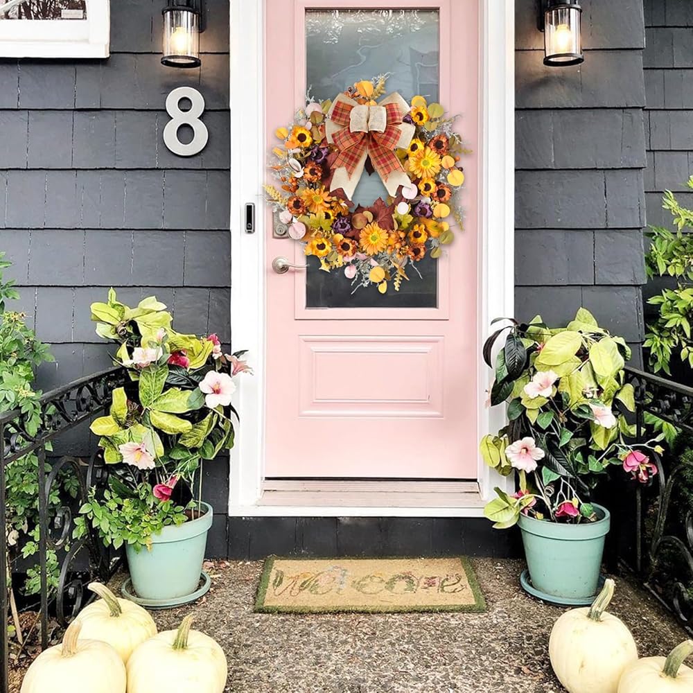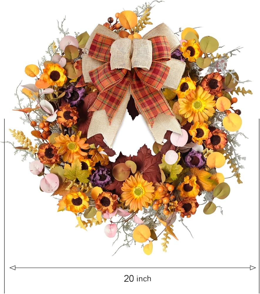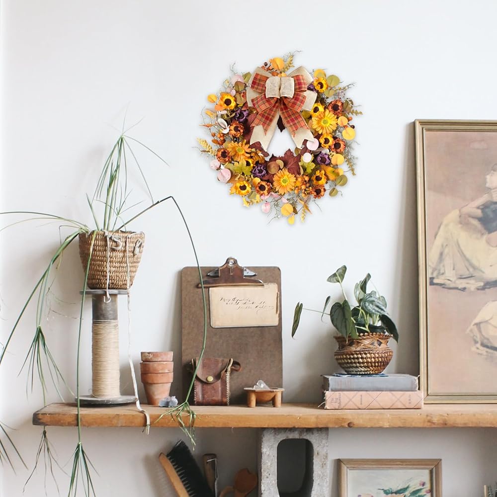 • إكليل الخريف الاحتفالي: هذا الإكليل النابض بالحياة مليء بالألوان والأنسجة الخريفية، ويضم عباد الشمس وأوراق القيقب ولهجات منقوشة.