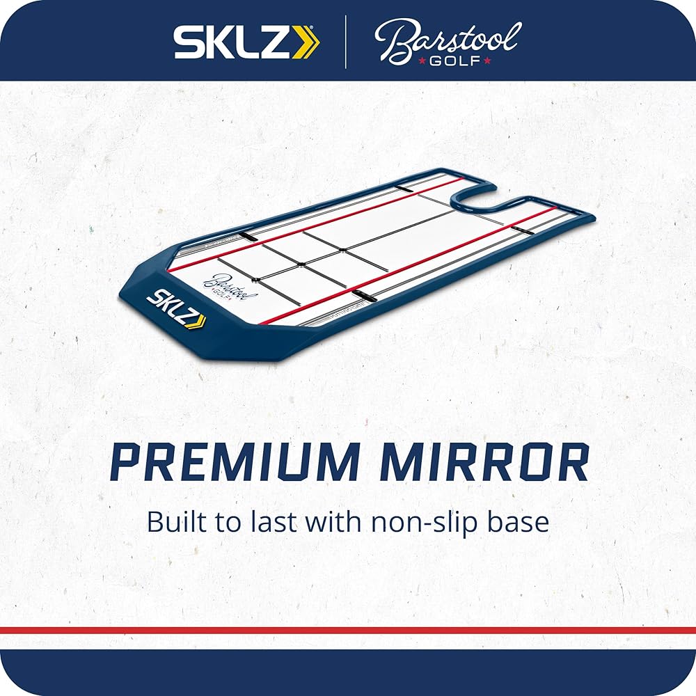 The SKLZ | Barstool Golf True Line Putting Mirror is a golfer's solution for common putting challenges. By emphasizing proper alignment with distinct markers, golfers can correct misalignment and improve aim. The mirror's putter path lines facilitate a consistent stroke, essential for control and precision. This training aid also aids in achieving square contact, crucial for distance management and minimizing sidespin, offering immediate visual feedback for stroke correction. Compact and easily transportable, it encourages practice anywhere, translating to confidence on the course. The non-slip base grants stability, ensuring focus remains on the shot, not the setting. Durability is paramount; the overmold design withstands regular use, symbolizing a long-term investment in your game. This mirror is more than a training aid; it's a transformative approach to putting, addressing misalignment, inconsistent strokes, poor ball contact, and lack of constructive feedback. Embrace the True Line Putting Mirror for a sustainable improvement in your putting technique, a testament to the synergy between cutting-edge golf technology and the influential reach of Barstool Golf.