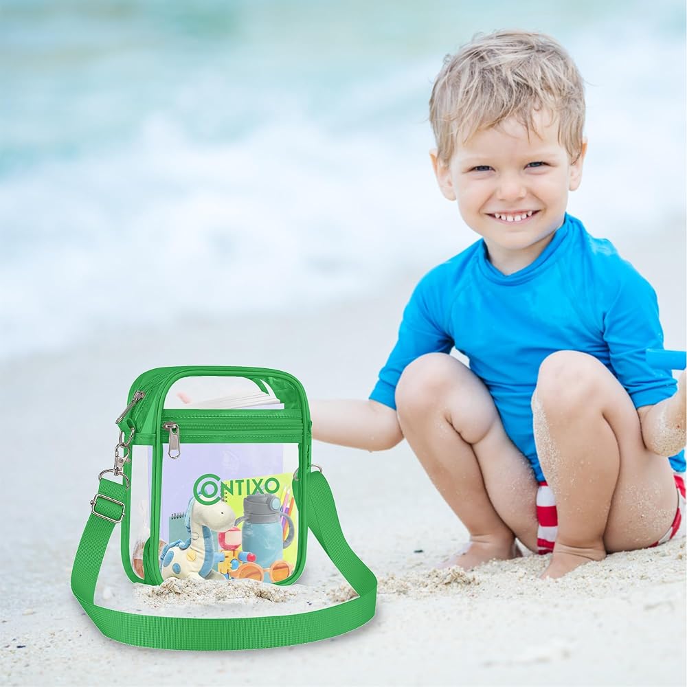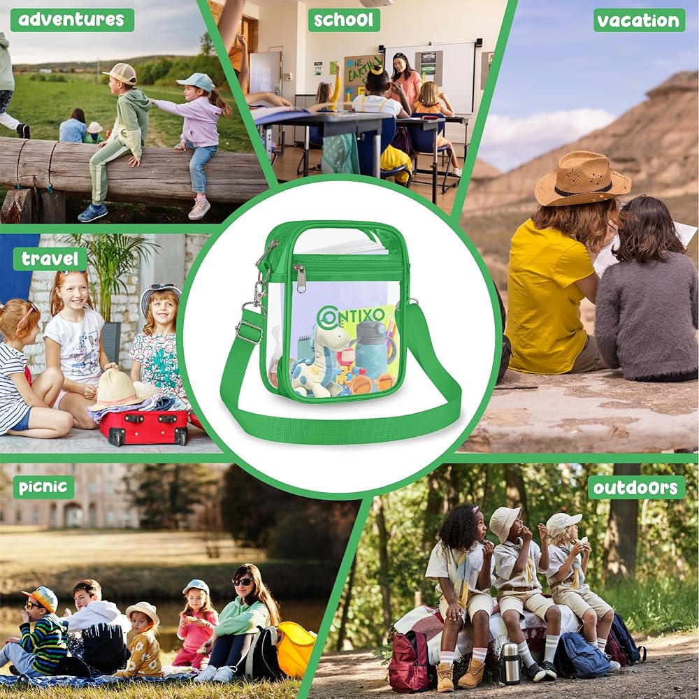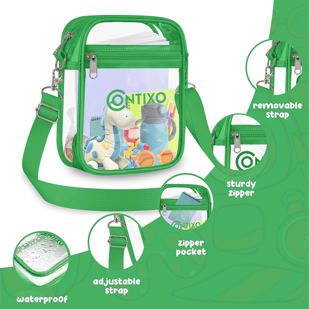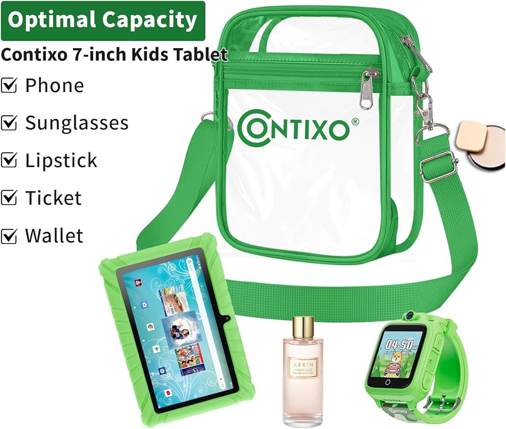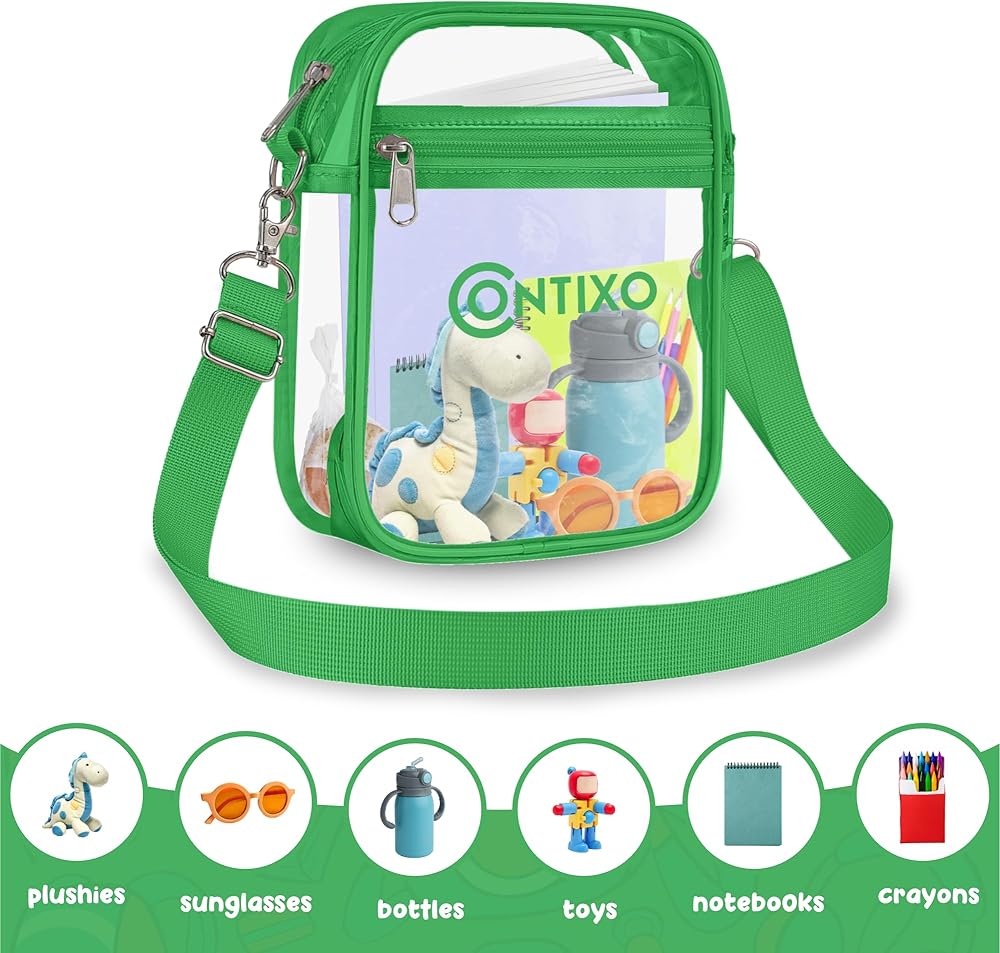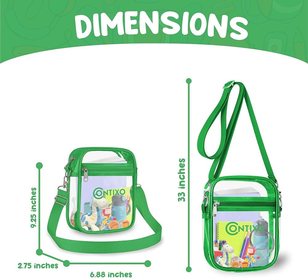 CLEAR CROSSBODY BAG STADIUM APPROVED - Our clear shoulder bag is fully approved for all major sporting events, combining functionality with style. Its 9.3 x 7.8 x 2.3-inch size makes it an ideal companion for school, field trips, or family outings. The lightweight design ensures it won't weigh your child down, allowing them to carry Contixo kids tablet or essentials with ease.