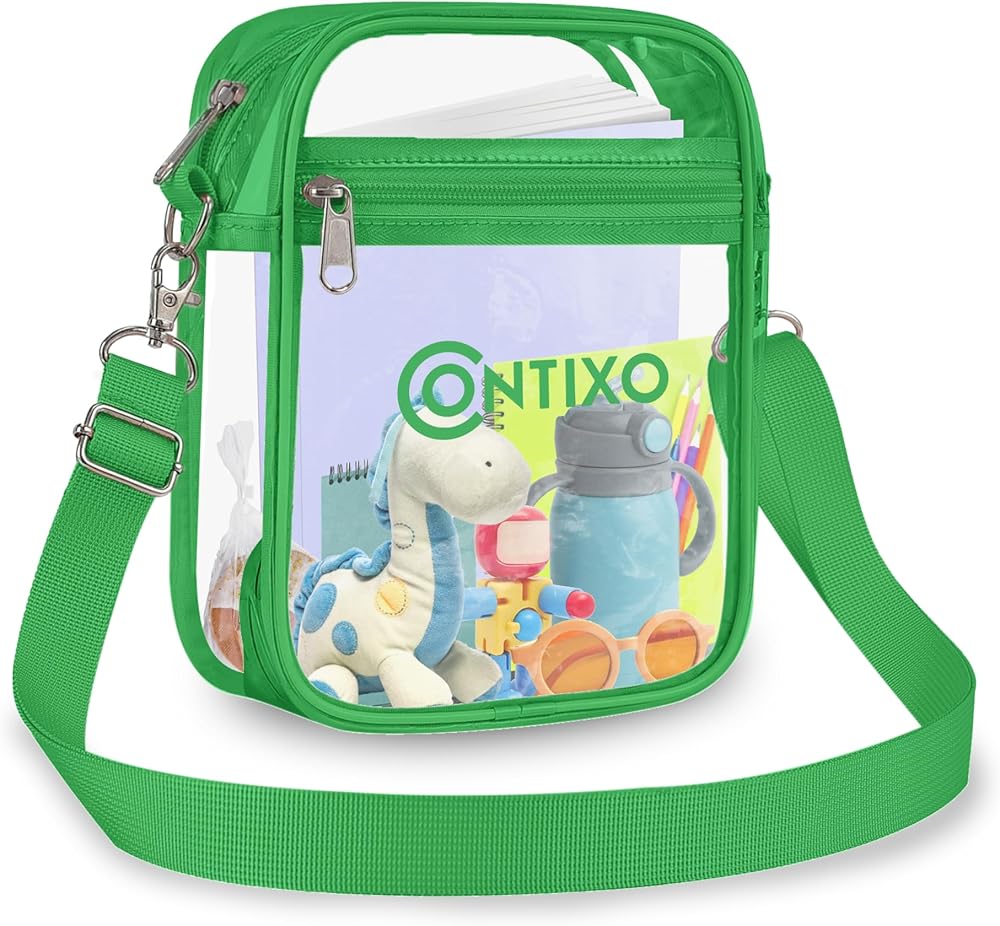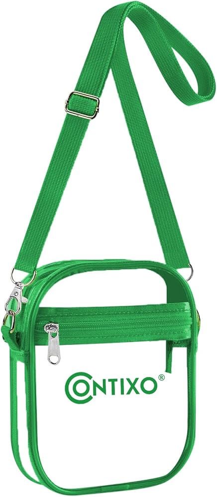 حقيبة شفافة من كونتيكسو لمناسبات الاستاد - حقيبة كروس من البولي فينيل كلوريد، حقيبة ماسنجر شفافة للرجال والنساء، والأطفال، والحفلات الموسيقية، والمهرجانات الرياضية مع حزام قابل للتعديل، مقاومة للماء، أخضر
