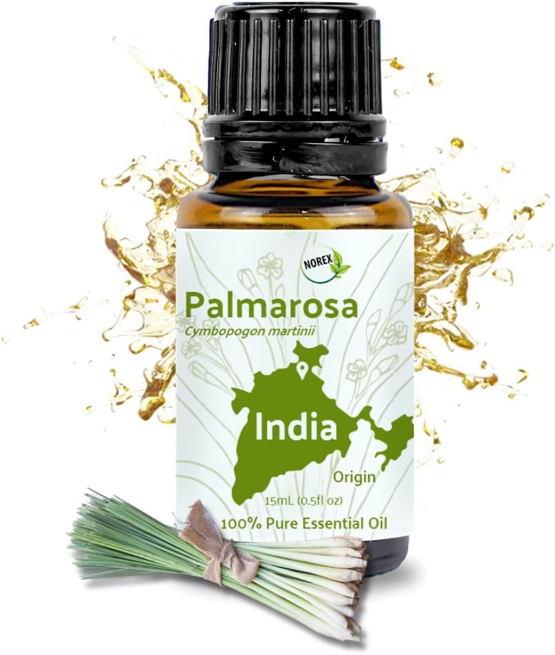 Indulge in the gentle nourishment of Palmarosa Essential Oil to enhance skin health and achieve a radiant complexion, perfect for your skincare routine or soap making projects.