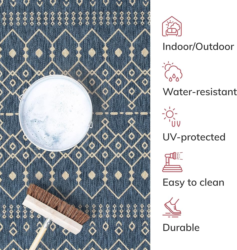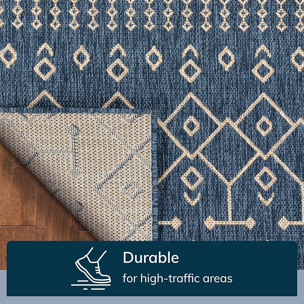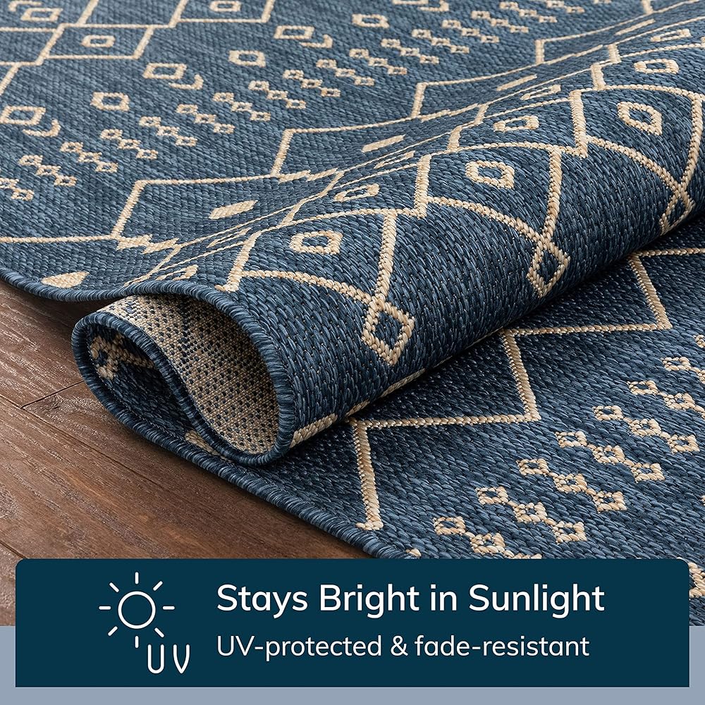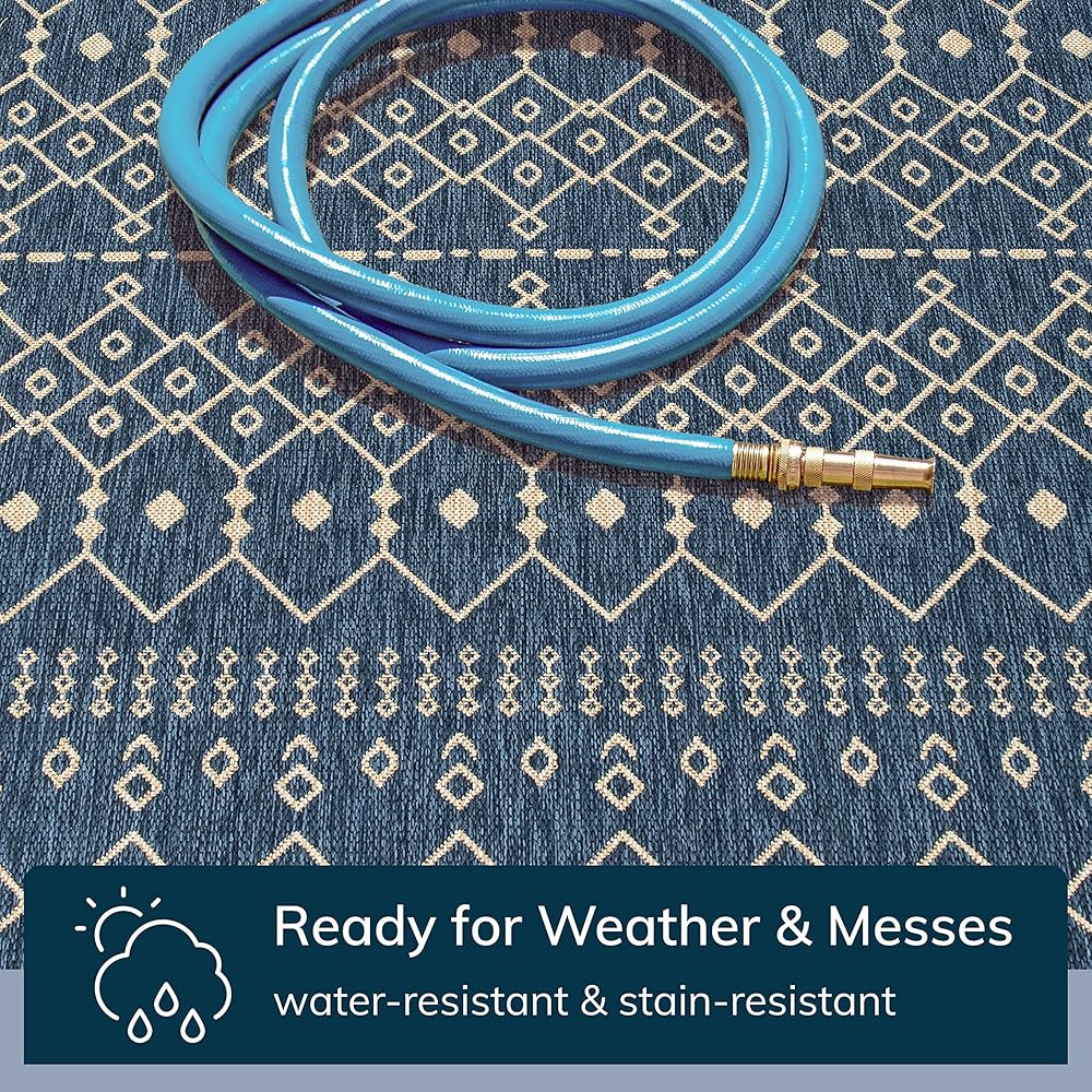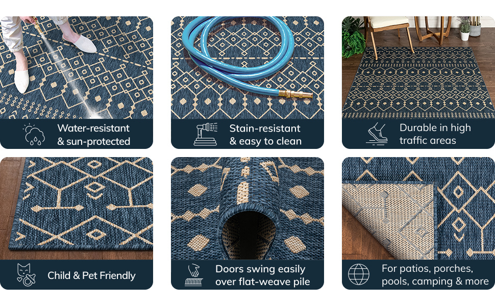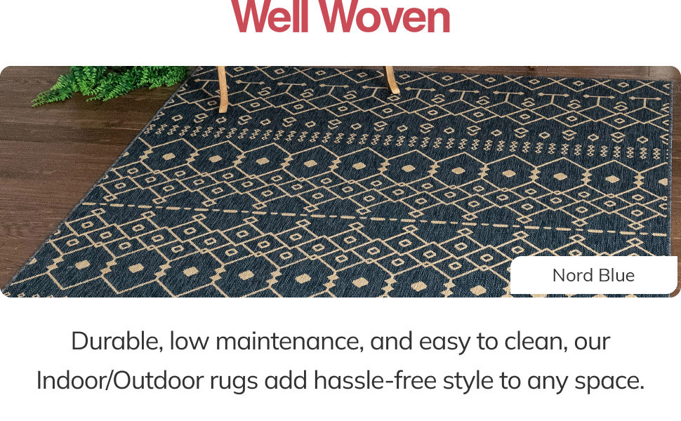 Features high resistance to tough outdoor conditions with the aesthetics of an indoor rug.