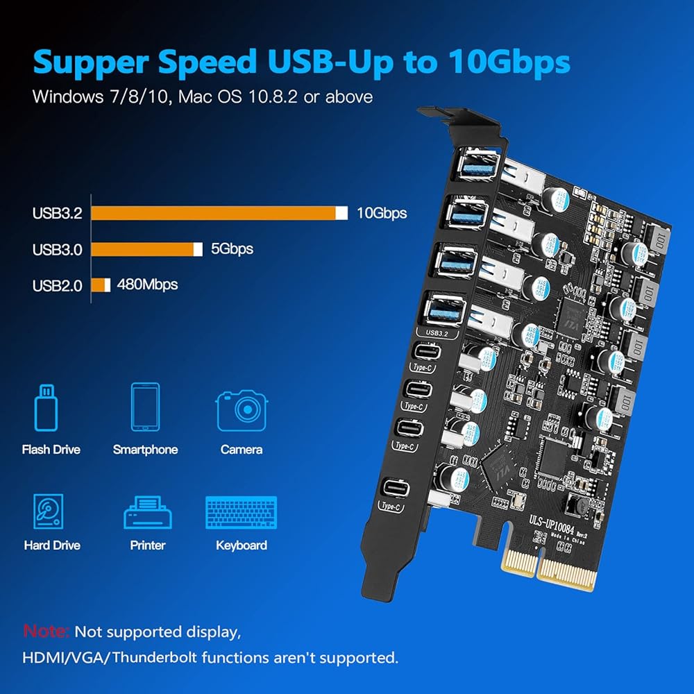 USB فائق السرعة 10 جيجابت في الثانية: سرعات نقل تصل إلى عرض النطاق 10 جيجا بايت في الثانية، 1 x أسرع مثل الجيل السابق يو اس بي 5 جيجابت في الثانية، هذا المحول من اليو إس بي إلى pcie ضروري للأقراص الخارجية وهو مثالي للنسخ الاحتياطي للملفات وتحرير الفيديو واستعادة البيانات.