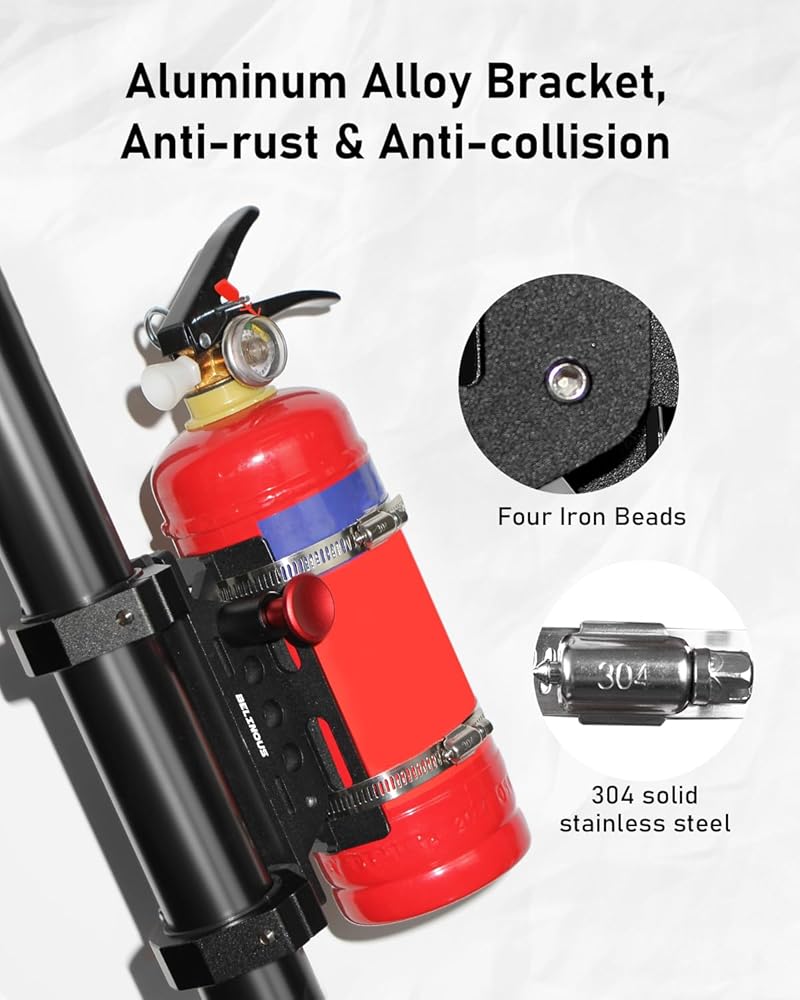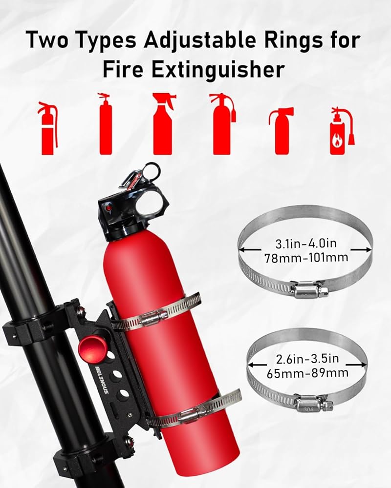 • Widely Fitment: This fire extinguisher mounting bracket is compatible with UTV, such as for Honda, Yamaha, Polaris, Kawasaki, Can-Am, Kymco, Bobcat, and almost all automotive, RV, kitchen, etc.