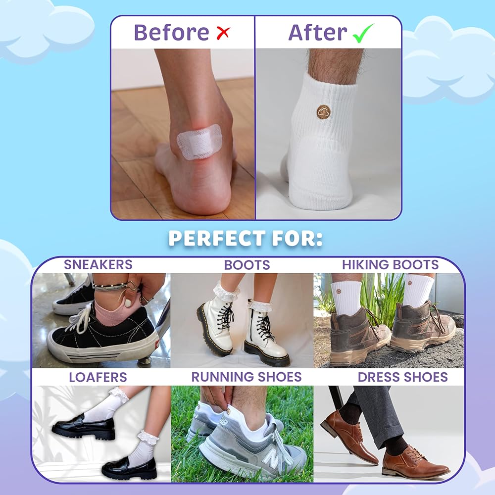 ارتداء أي حذاء – هل تتعامل مع تلك الأحذية الجلدية العنيدة التي يصعب كسرها؟ مع جواربنا المبطنة بالفوم، يمكنك ارتداء زوج حذائك الجديد دون الشعور بأي إزعاج. توفر جواربنا توسيدًا إضافيًا وتقلل الاحتكاك. سواء كانت الأحذية الجلدية، أو ماري جينس، أو الأحذية بدون كعب، أو الأحذية الرياضية، أو الأحذية الرجالية، أو الأحذية الرياضية، أو أحذية المشي لمسافات طويلة القوية، فإن هذه الجوارب تعزز الراحة وتسهل عملية الارتداء. قل وداعًا لتلف كعبك أو مضاعفة الجوارب مع هذا الحل المكون من خطوة واحدة.