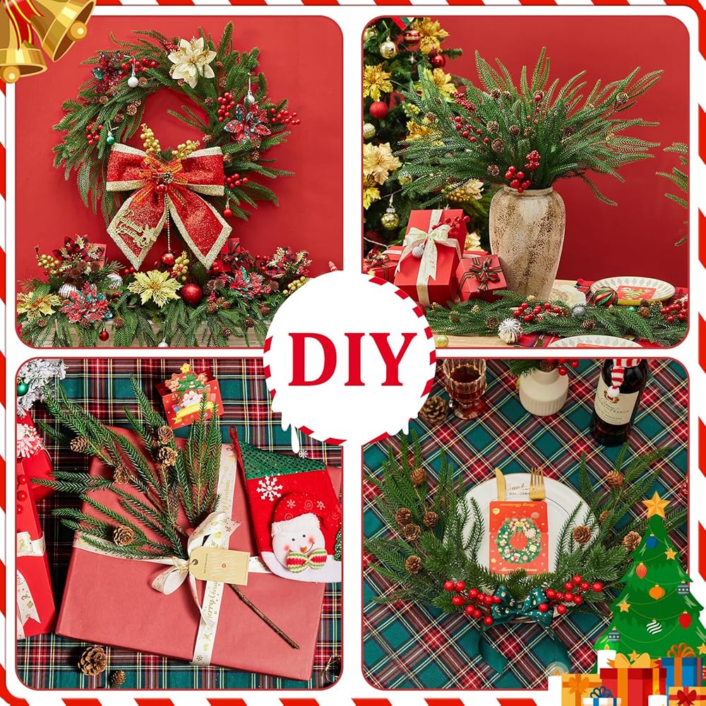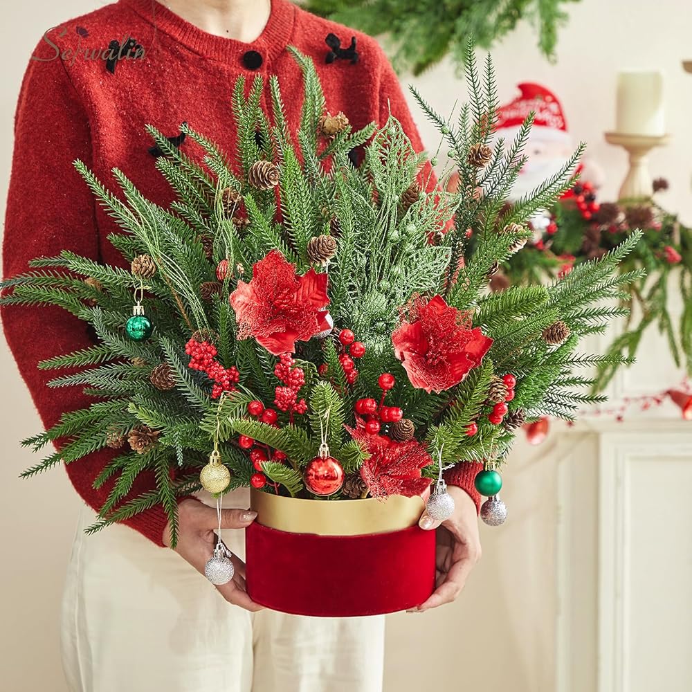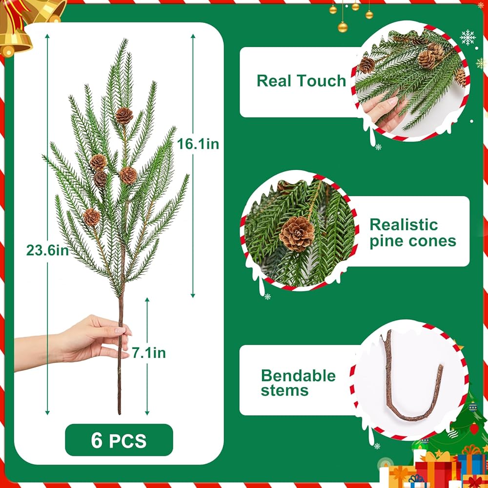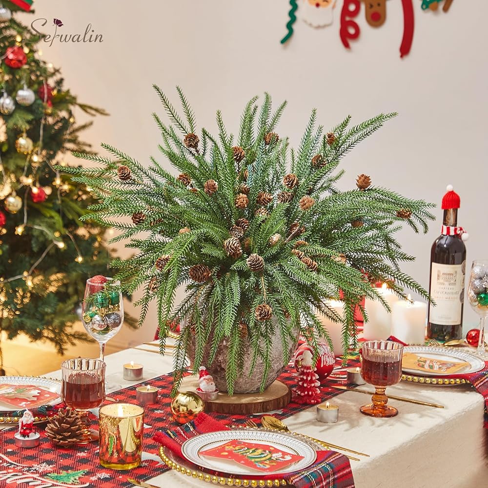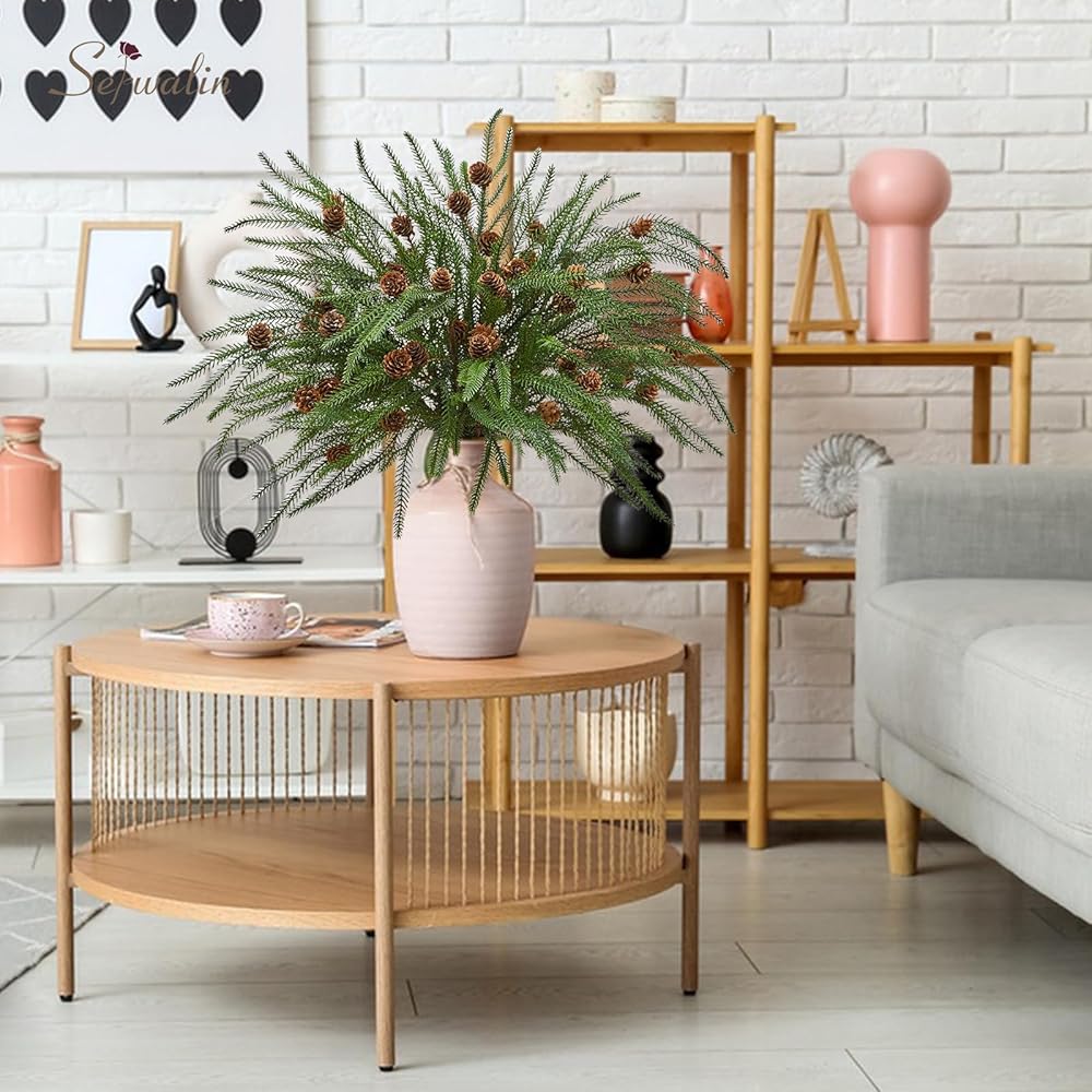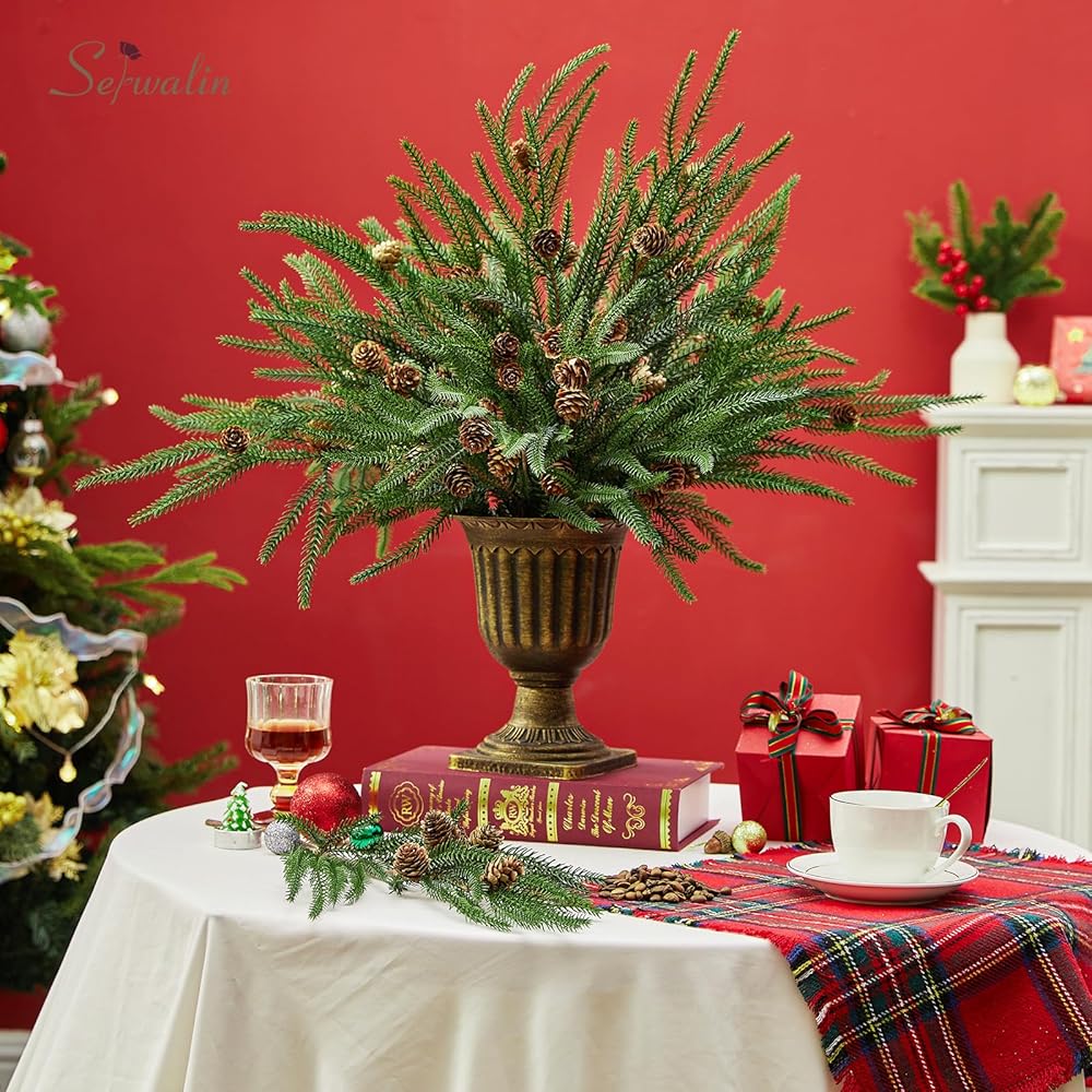 • عناصر الإثراء: 12 قطعة من فروع الصنوبر مع مخاريط الصنوبر؛ الطول 23.6 سم، يمكنك ثني السيقان لتناسب حجم المزهرية الخاصة بك، مما يوفر حجمًا كافيًا لمجموعة متنوعة من الأغراض الزخرفية