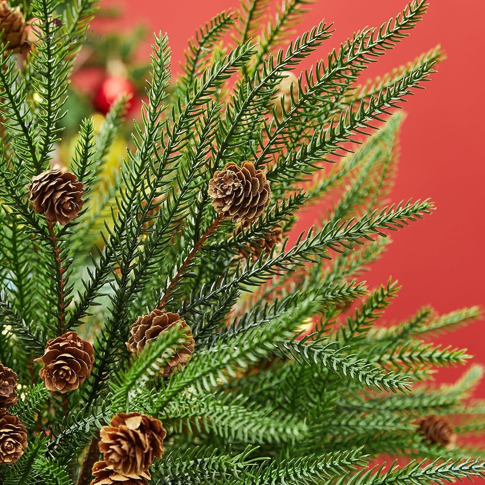 • جمال واقعي: تبدو سيقان صنوبر نورفولك عالية الجودة ومخاريط الصنوبر نابضة بالحياة بشكل لا يصدق، مع إبرة رقيقة وتفاصيل واقعية تحاكي جمال صنوبر نورفولك الحقيقي، فهي تضيف لمسة من جو العطلة إلى أي مساحة لقضاء عطلة عيد الميلاد الخاصة بك.