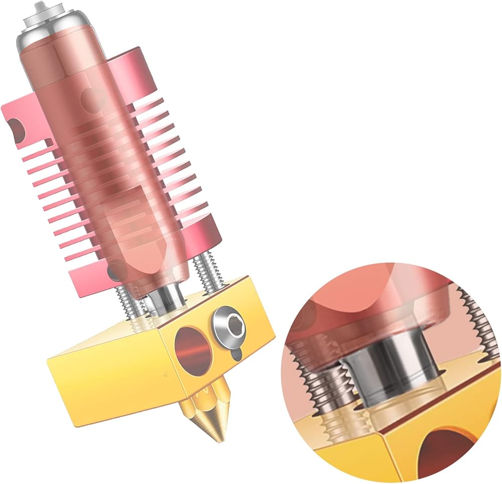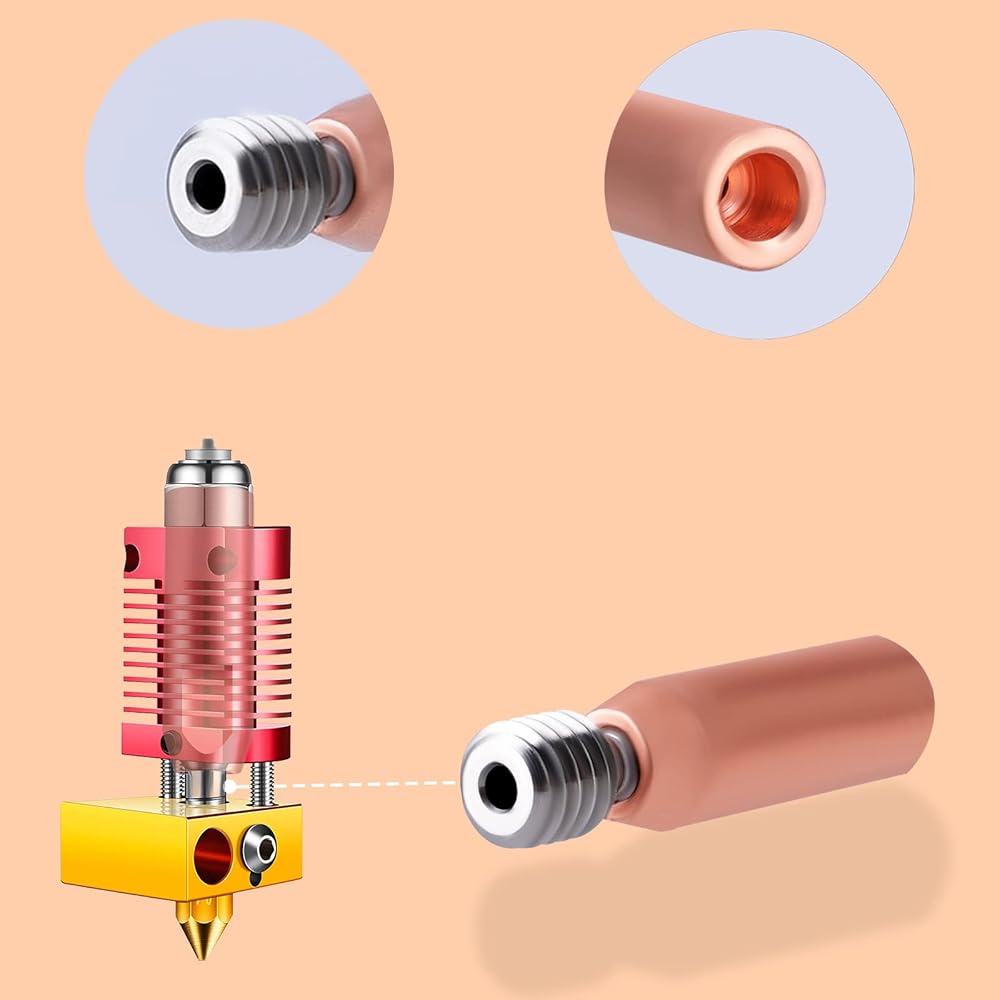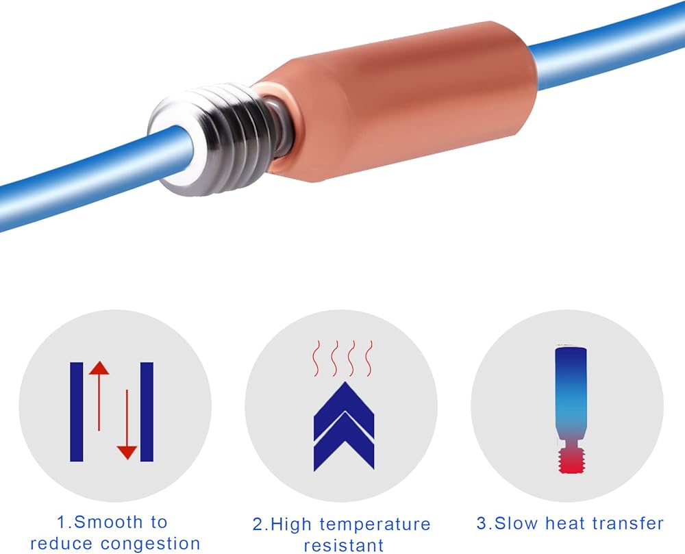 Conducts Heat Quickly: The V6 heatbreak is made of titanium alloy and copper. Titanium alloy is used to reduce the heat conduction upward from the heating block, while copper is used to accelerate the heat conduction. accelerate the heat conduction. The thermal conductivity of TC4 is about I=7.955W/m·K.