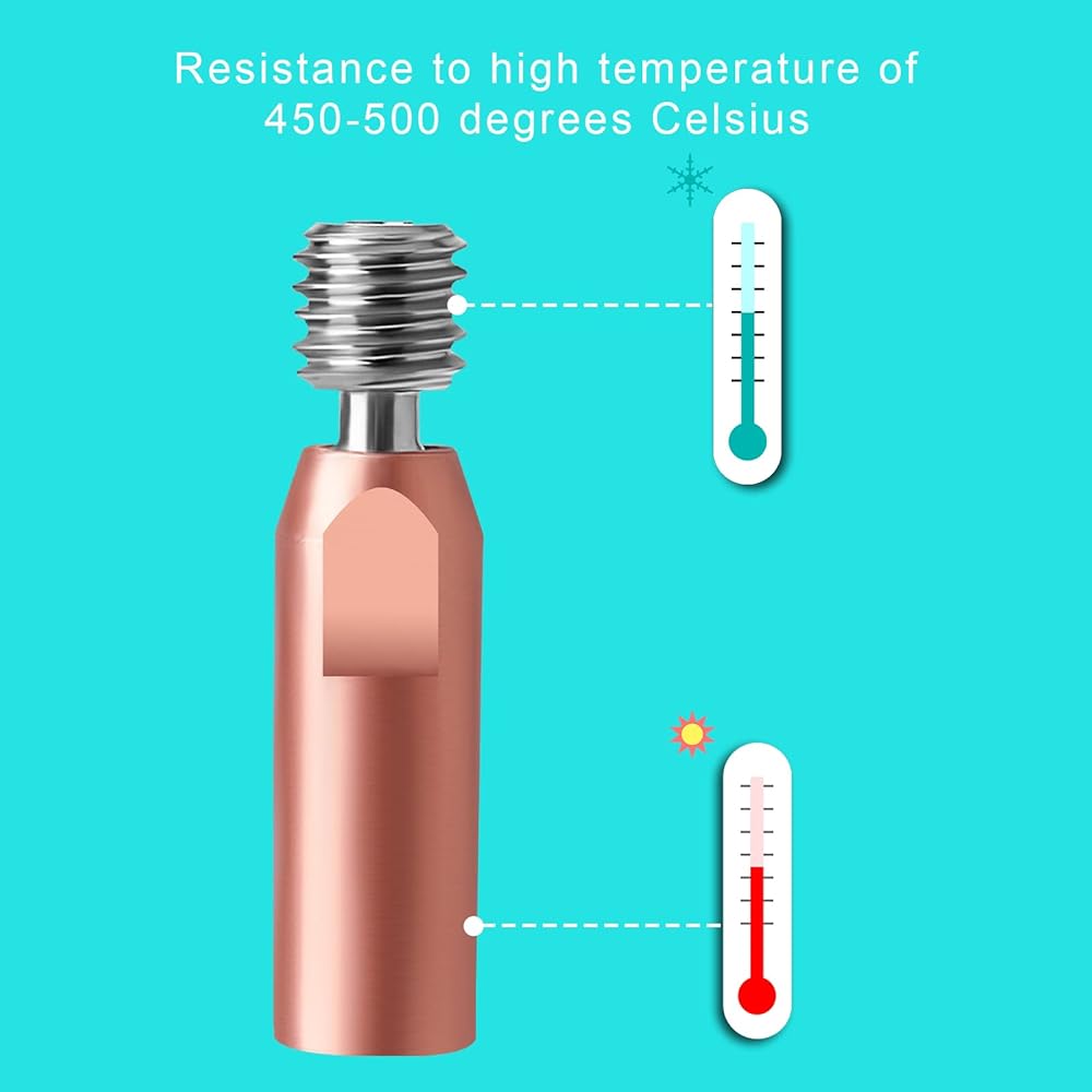 Applicable Models: The titanium alloy and copper heatbreak is compatible with Ender 3 V2, Ender 3 Pro, Ender 3 CR10 series 3D printers, the thread size is M6.