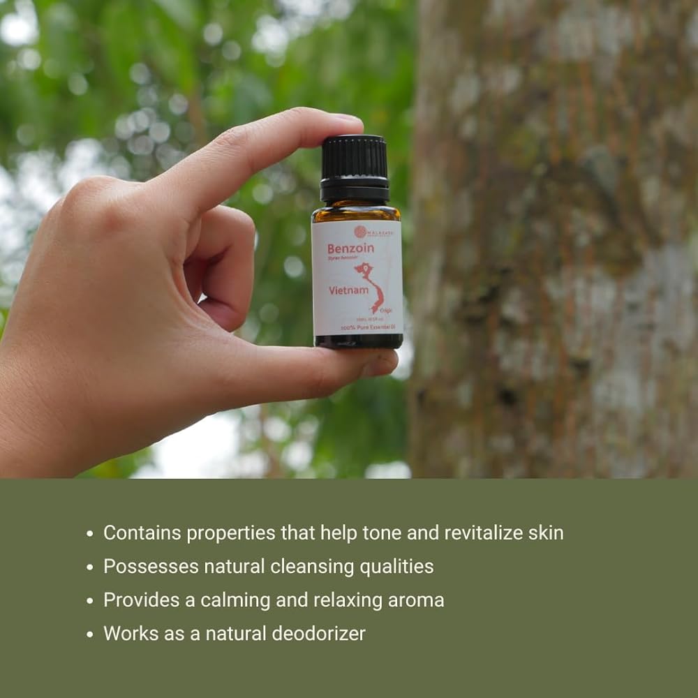 • Experience the natural cleansing prowess of Benzoin Essential Oil organic properties, offering a gentle yet effective cleanse while imparting a soothing sensation. Incorporate it into your routine for skin that feels rejuvenated and nourished.