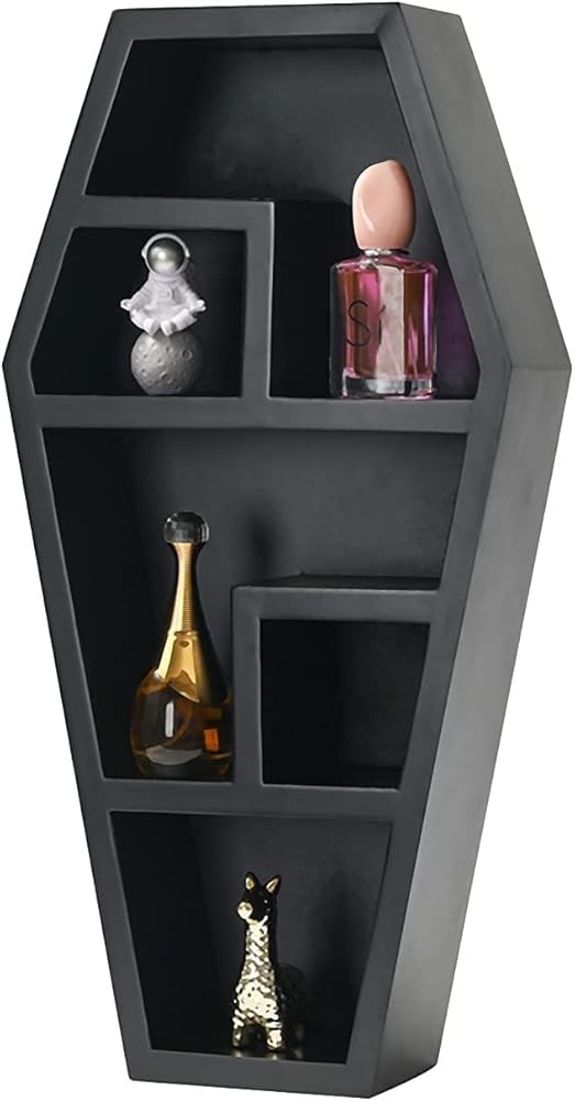 إذا كنت تحب ديكور الرعب أو الديكورات القوطية، فإن رف التابوت هذا سيمنحك التصميم والأسلوب الذي تريده دائمًا، ويمكن استخدام هذا الرف الخشبي التابوت كرفوف للكتب أو لمسة زخرفية في منزلك.