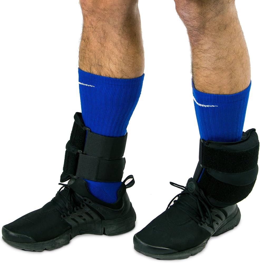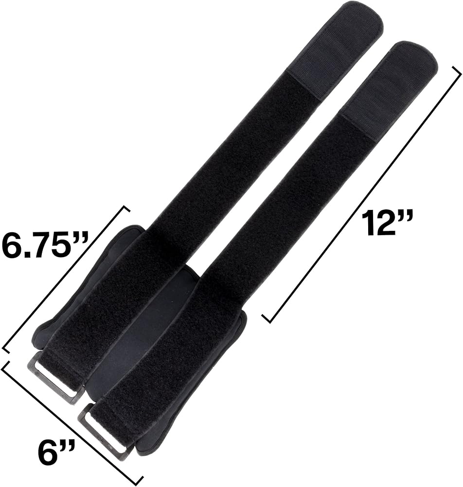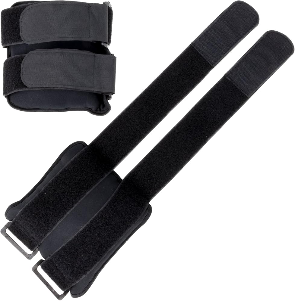 Each black ankle weight comes in a pair and are made with soft, moisture-wicking fabric to provide comfort and to lightly absorb sweat. They can be loosened or tightened to your desired fit with adjustable hook and loop fastener straps and ring closures. These ankle weights rest on the outside of the legs to prevent rubbing and bumping for a more comfortable walk, jog, or run as well as during leg exercises.