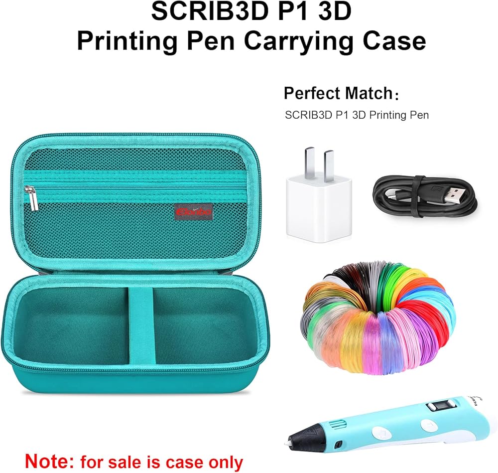 This 3D Pen carrying case is specially designed for scrib3d p1 3d printing pen. Internal space 1:1 build, perfectly fit for scrib3d p1 3d printing pen with display. extra mesh pocket for 3d printing pen filament, pen refills, power cord. (CASE ONLY! scrib3d p1 3d printing pen and accessories are not included).This 3d pen storage case compatible with scrib3d p1 3d printing pen, is made of PU leather hard EVA material and velvet lining, shockproof water-resistant scratch resistant dust-free anti-static. the 3d printing pen travel case is very suitable to provide travel protection for scrib3d p1 3d printing pen.This scrib3d p1 3d printing pen holder comes with extra interior mesh pocket, which can fit your 3d printing pen filament, pen refills, stencil book project guide, and charger power cord. the scrib3d p1 3d printing pen cover has double zipper design, can be opened and closed freely, provides easy access to your scrib3d p1 3d pen/ 3d printing pen filament.The stylish scrib3d p1 3d printing pen storage holder is featured with a elastic bands. can fix scrib3d p1 3d pen/ filament, pen refills with case tightly and avoid shake at will. The ultra-portable scrib3d p1 3d printing pen carrying case lightweight and compact, easy to put in backpacks, ideal for daily use and travel.This well-designed scrib3d p1 3d printing pen case has a very comfortable portable handle for convenient portability on the go, suitable for traveling, hiking, camping. or storing scrib3d p1 3d printing pen when not in use.