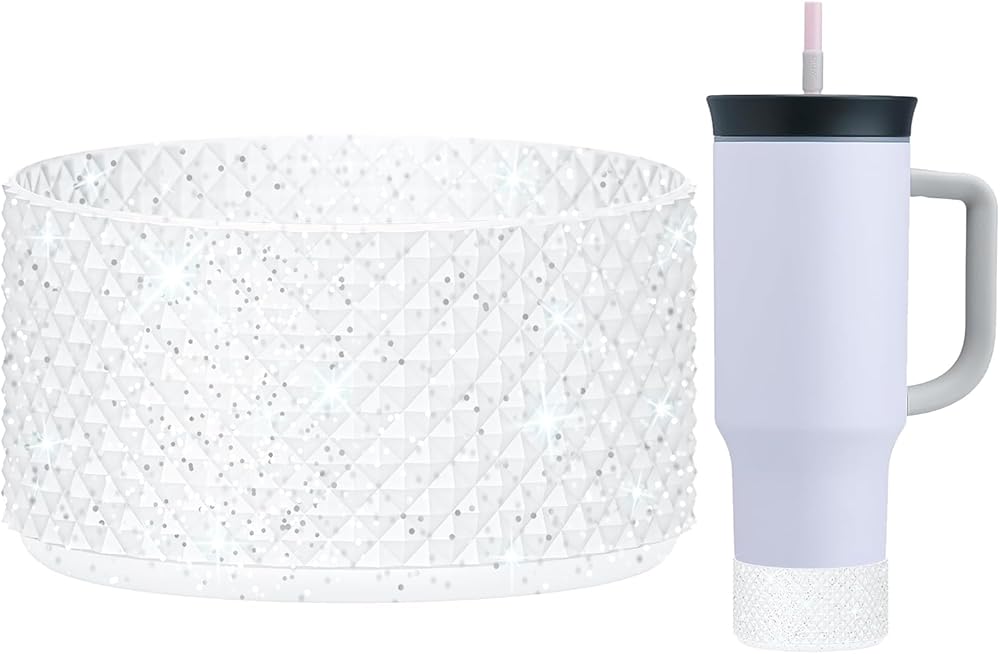 حذاء لامع من السيليكون الماسي، متوافق مع كأس ستانلي 20-40 أونصة، لكوب أوالا 40 أونصة، مضاد للانزلاق لزجاجة المياه، غطاء حماية لملحقات ستانلي، Tr-Silver-V