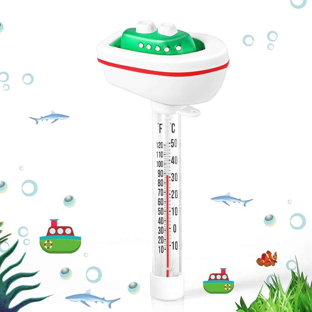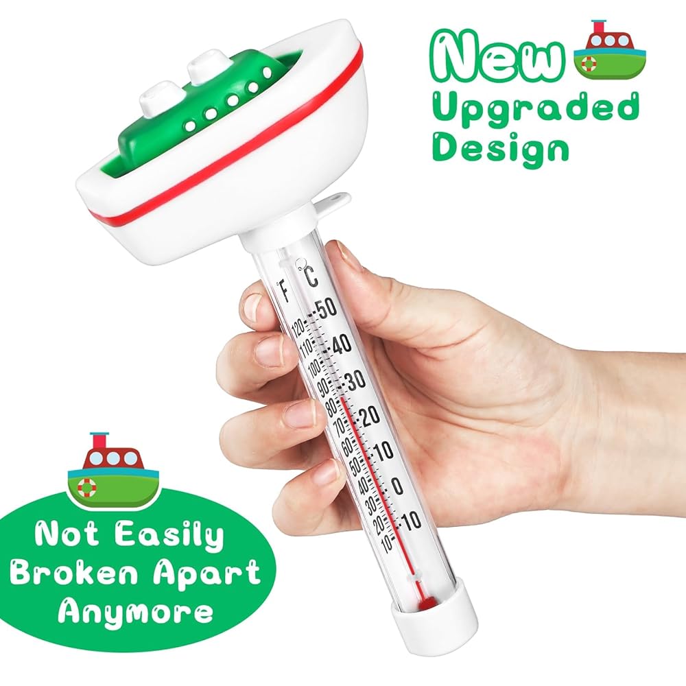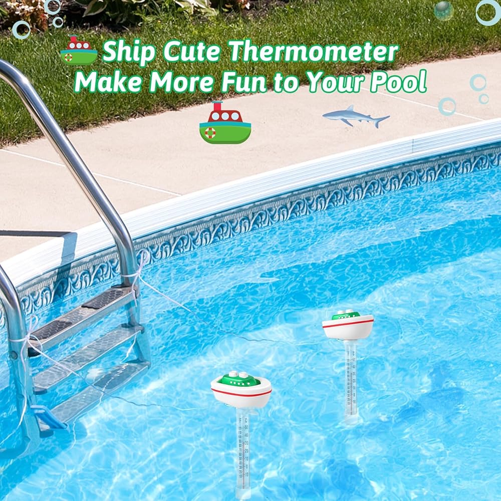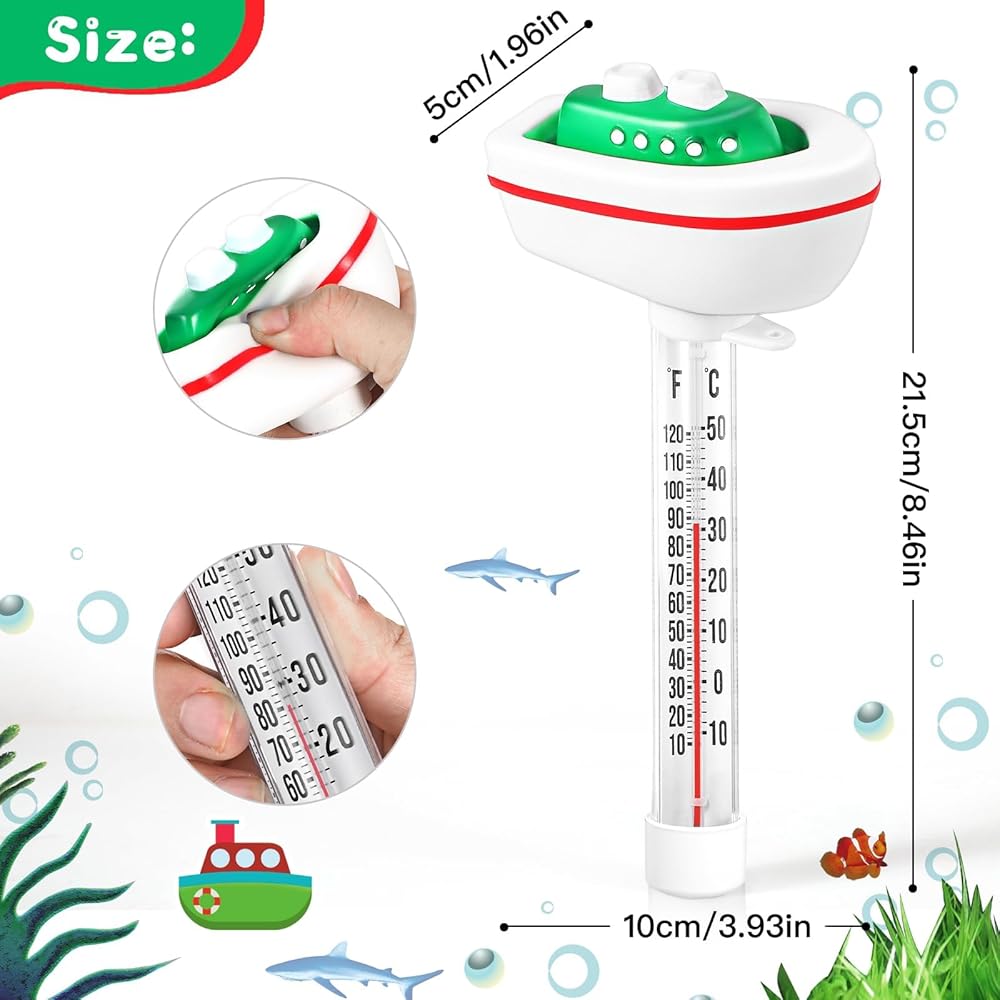 ميزان حرارة حمام السباحة العائم، مقياس حرارة درجة حرارة الماء مع سلسلة، حجم كبير سهل القراءة وإكسسوارات حمام السباحة المقاومة للكسر لحمام السباحة الخارجي والداخلي، وحمام الثلج وحوض الاستحمام الساخن، والمنتجعات الصحية (السفينة)