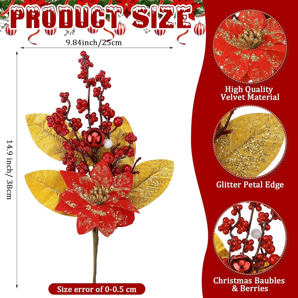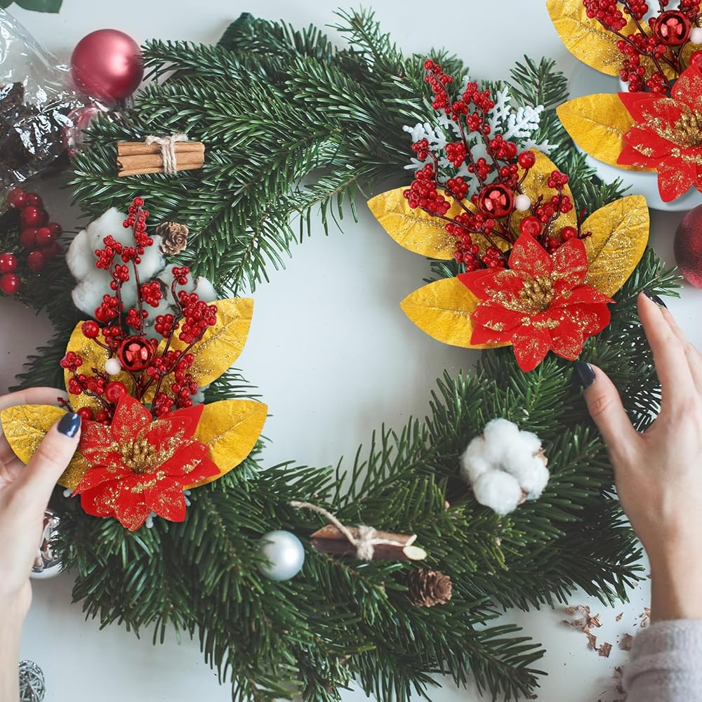 Wide Application: our flowers are suitable for Christmas tree decorations, wedding decorations, house decorations, Christmas wreath decorations, Christmas gifts and other Christmas decorations; They bring in a gorgeous look that supports and accentuates other holiday ornaments, leading to a beautifully decorated Christmas party