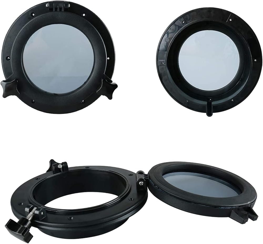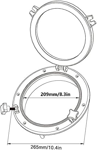 YaeMarine 10 بوصة فتحة مستديرة فتحة فتحة اليخت لاستبدال فتحة النافذة القطر الإجمالي: 10.4 بوصة/265 مم القطر المفتوح: 7.75 بوصة/197 مم أسود