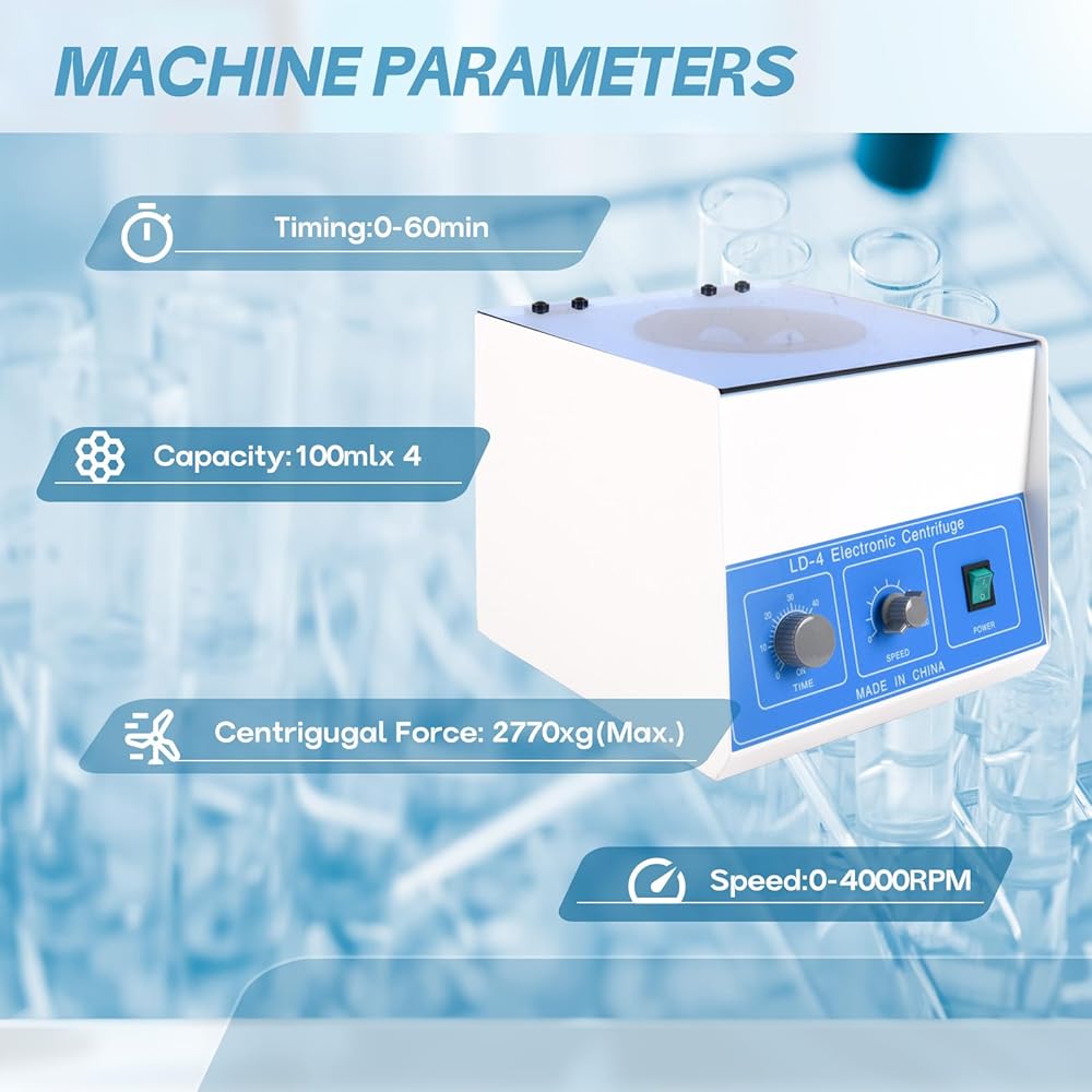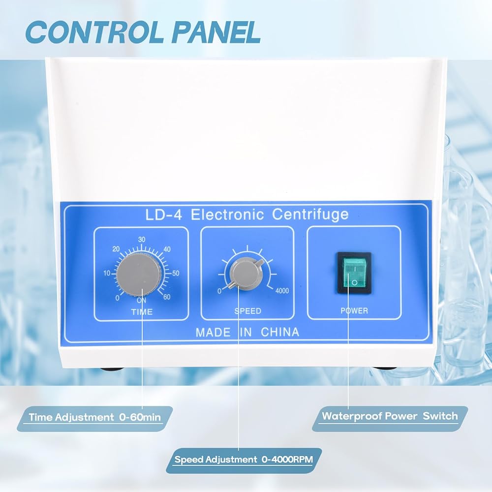 【التحكم في السرعة والمؤقت】يتميز تصميم جهاز الطرد المركزي الكهربائي الخاص بنا بمقبضين دوارين لتعديل السرعة والوقت. تتميز أجهزة الطرد المركزي الموضوعة على الطاولة بسرعة قصوى تبلغ 4000 دورة في الدقيقة.
