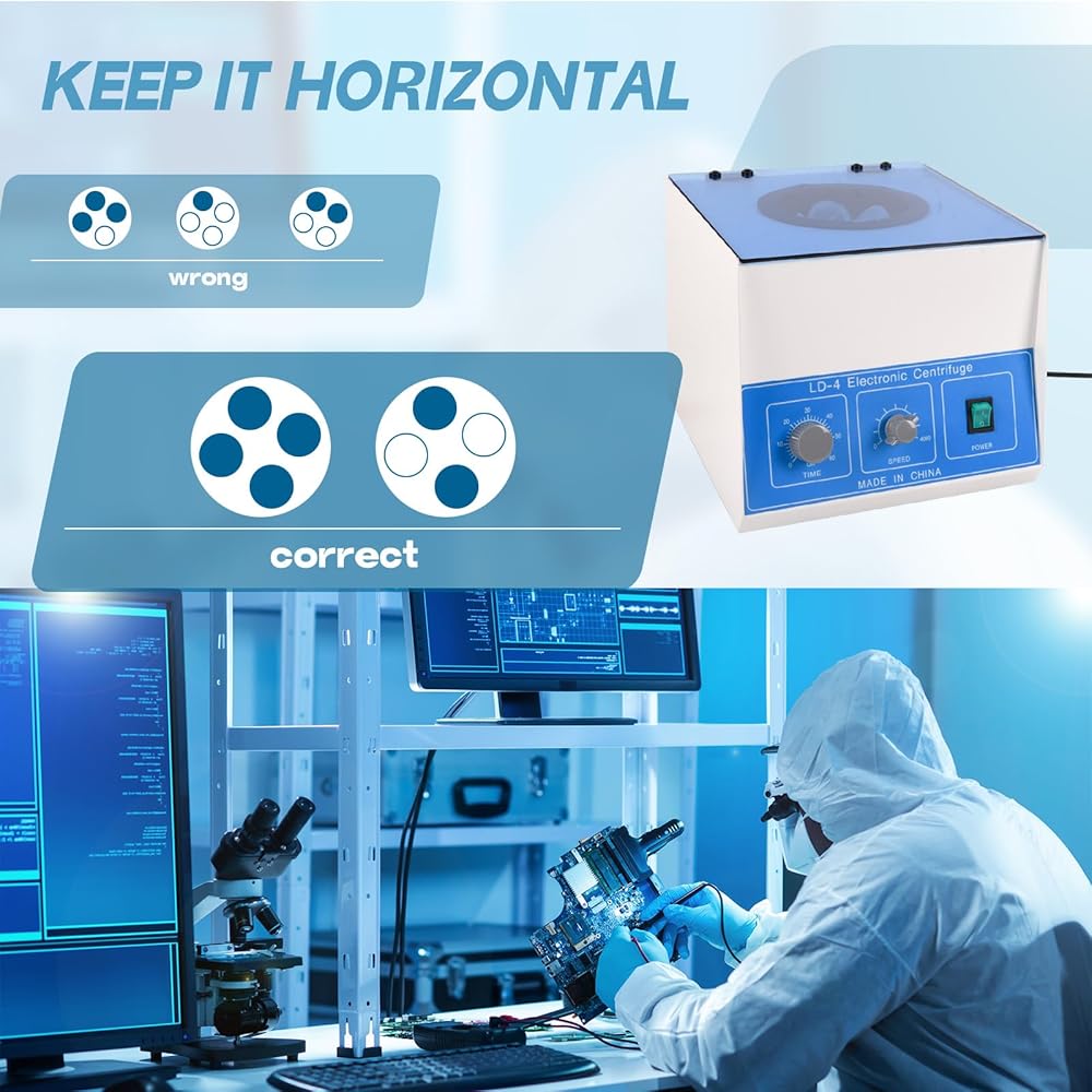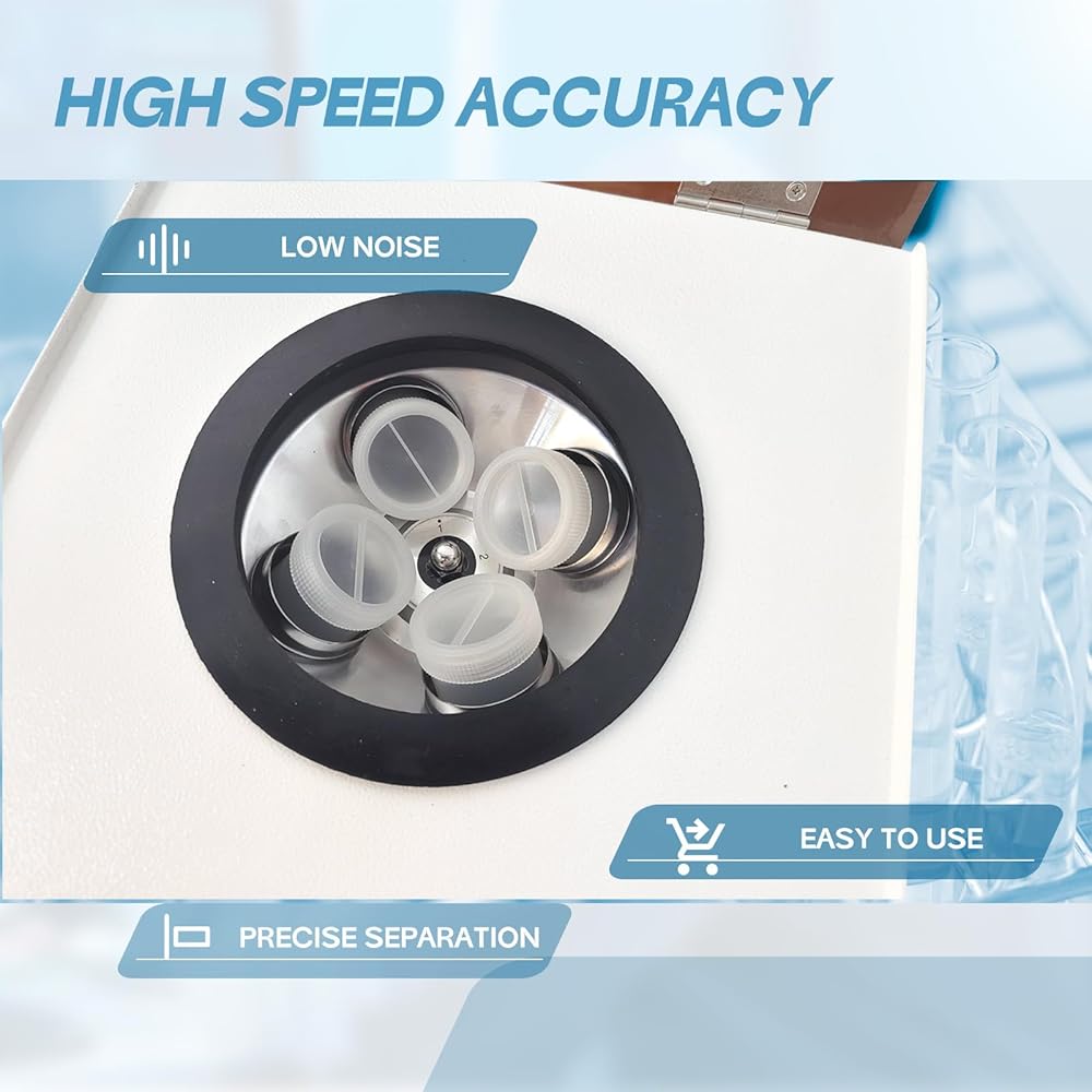 【كفاءة عالية】يتمتع جهاز الطرد المركزي للمختبر بسعة قصوى تبلغ 50 مل × 8 فتحات في المرة الواحدة. ملحوظة: يجب ألا تتجاوز سعة الطرد المركزي الفعلية 80% من سعة أنبوب الاختبار. يرجى وضع الأنبوب الذي يحتوي على نفس الكمية من العينة في الدوار بشكل متناظر. إذا كانت العينة مفردة، يرجى إضافة أنبوب من الماء النظيف لتحقيق عملية متماثلة.