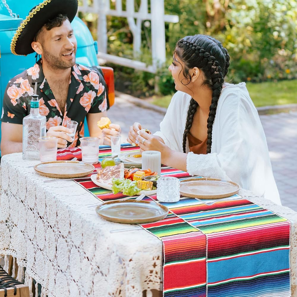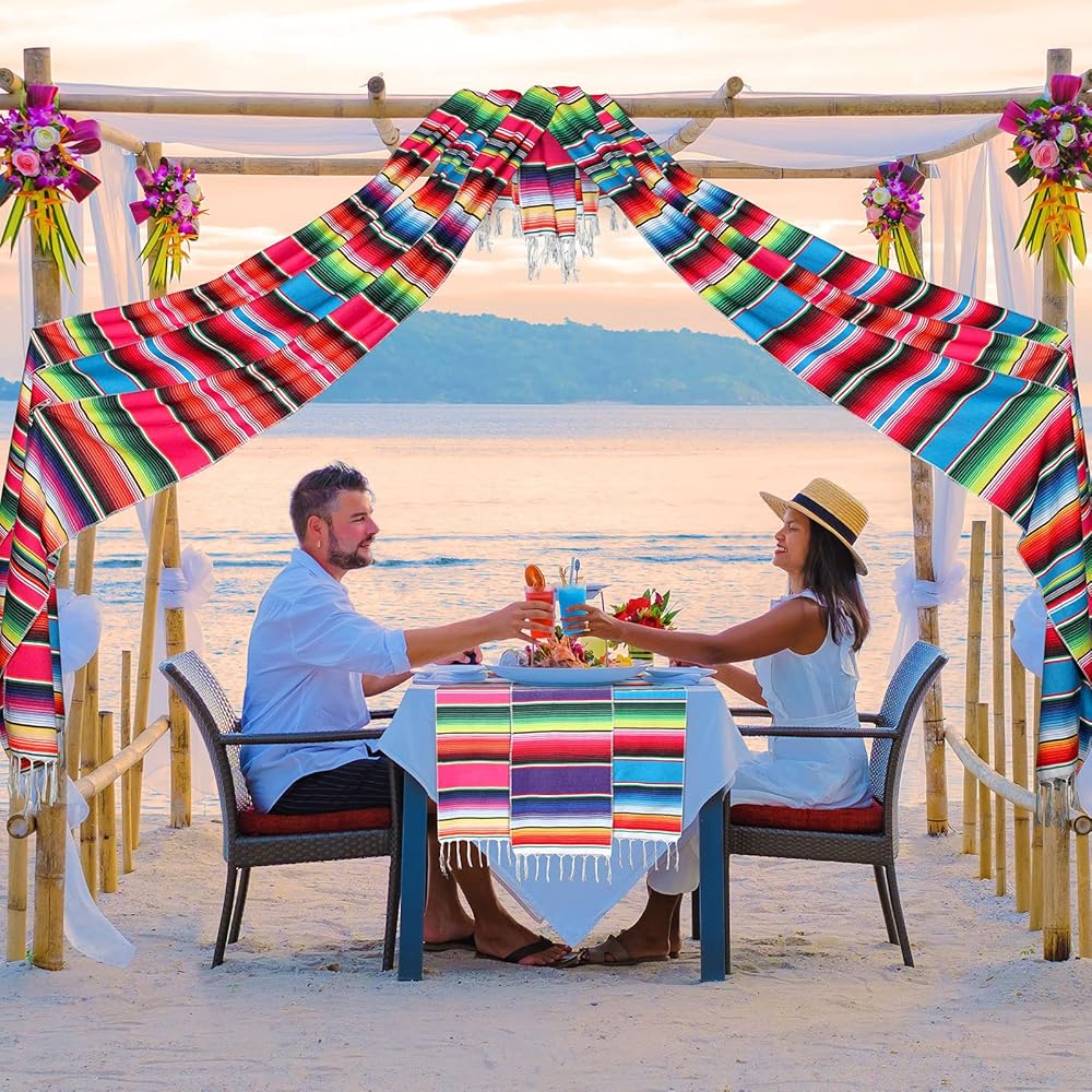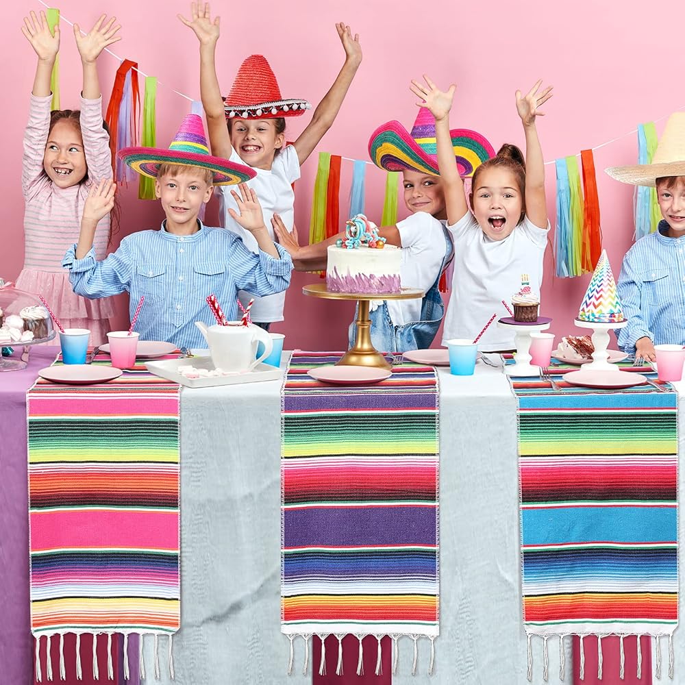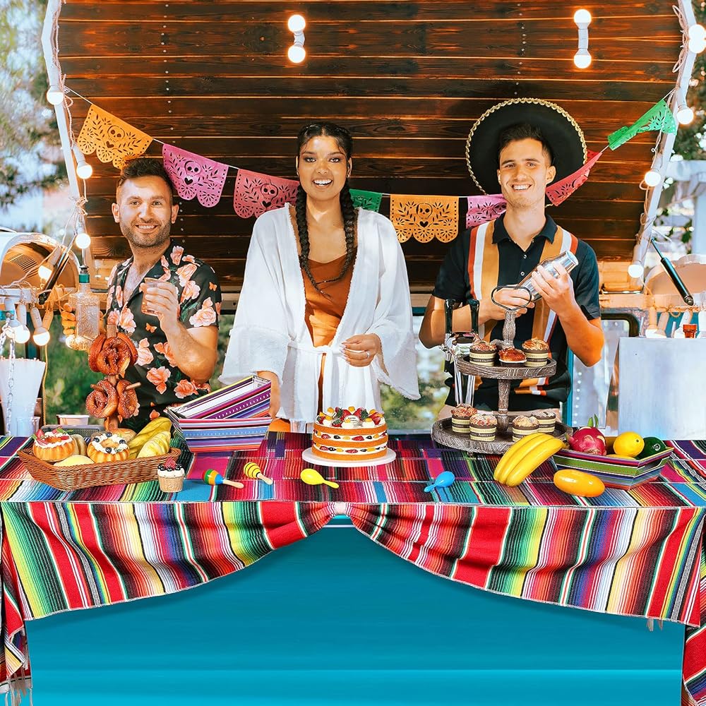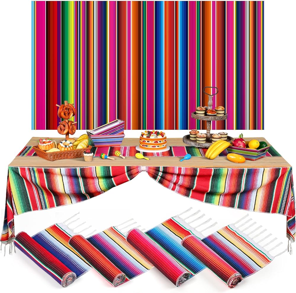 5 pack Mexican party decor set includes 4 pack table runner and 1 pack Mexican fiesta backdrop photo booth Cinco De Mayo backdrop for fiesta party serape table runner Mexican party decorations