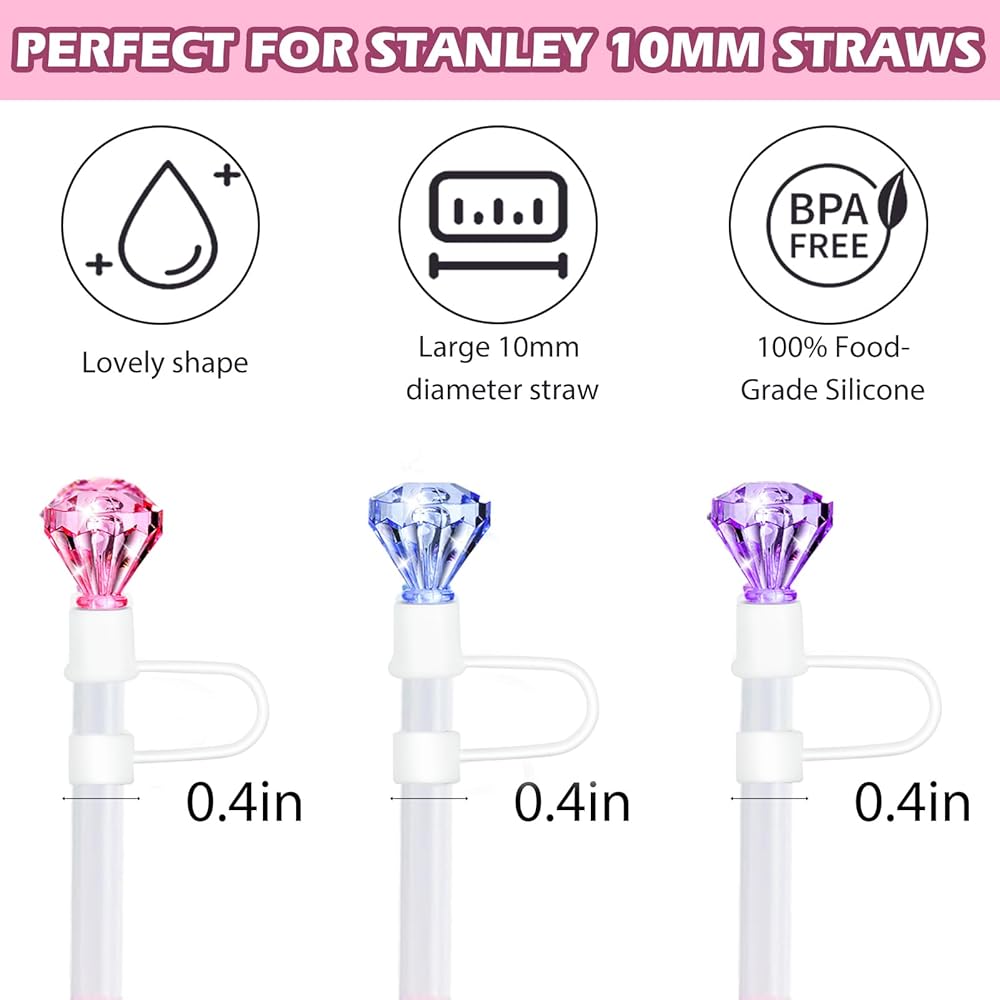 • 10mm STRAW COVER CAP:The cute silicone straw topper can perfect compatible with stanley cup 30oz & 40oz,and the other 10 mm straw,if you want to buy the diamond water bottle straw cover,please make sure the size. reusable silicone straw cover stanley cup accessories.Cute bling straw topper bulk.