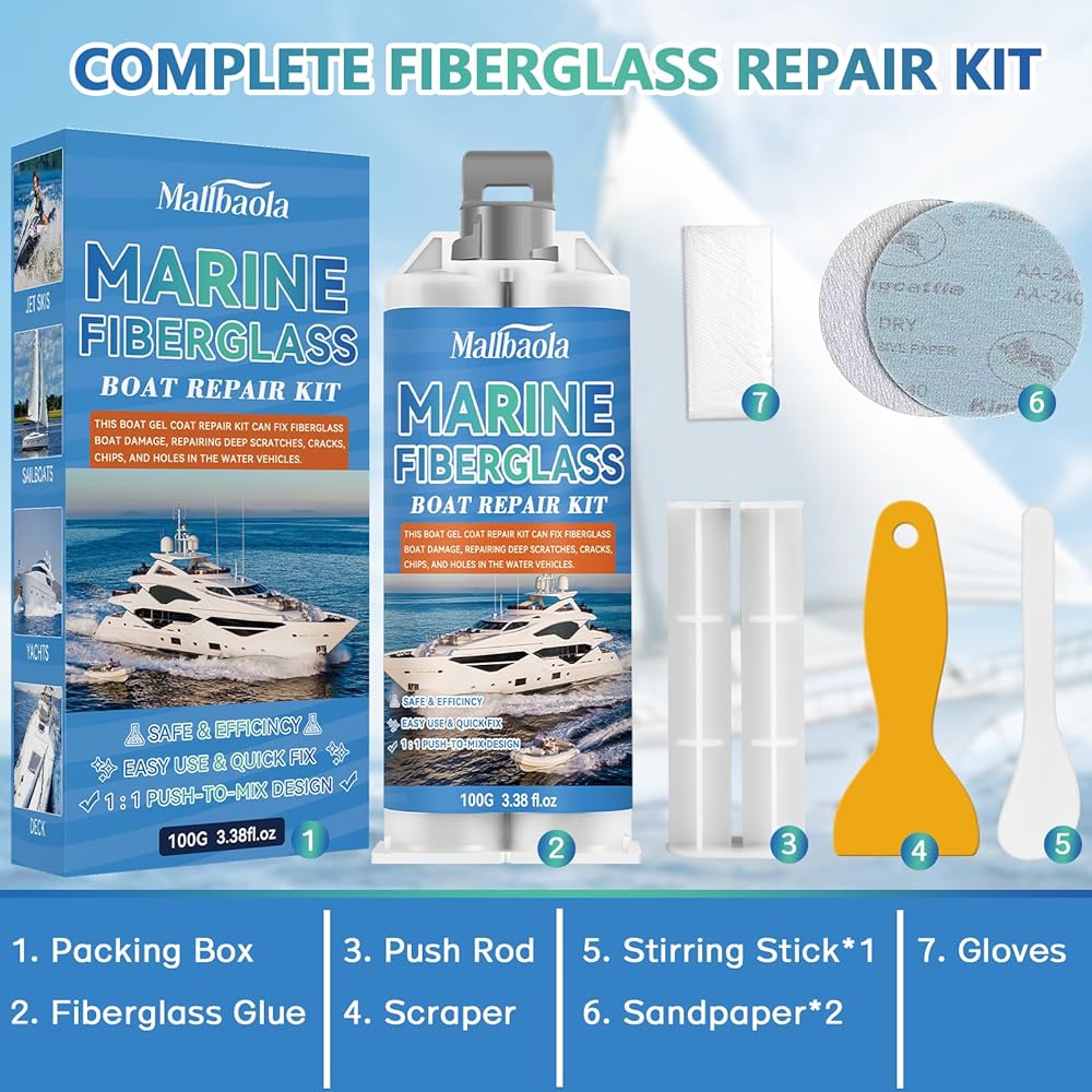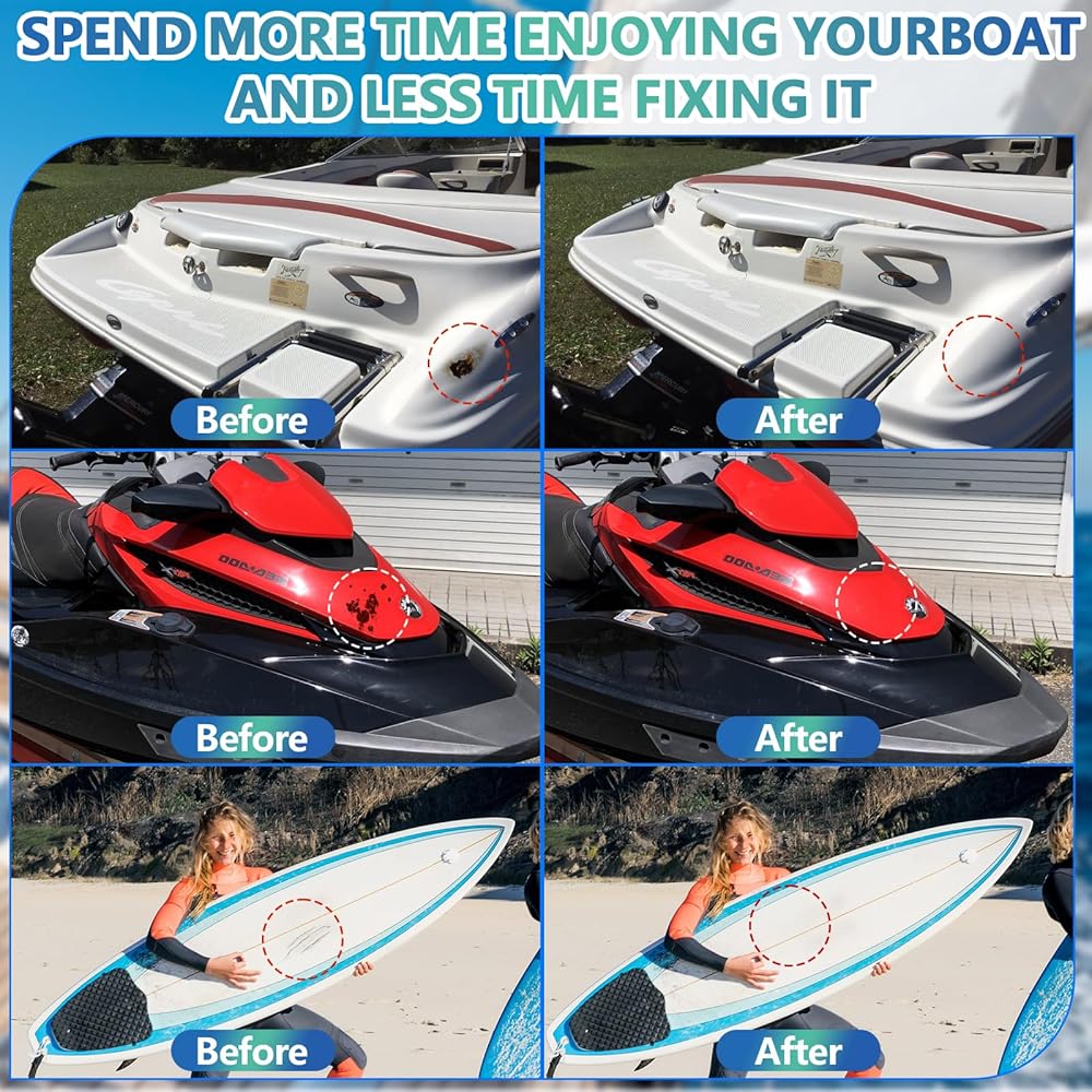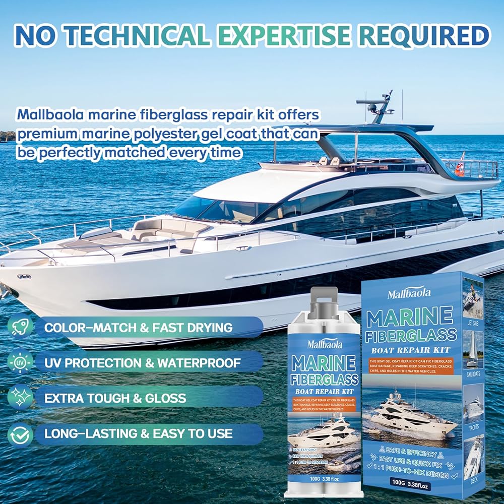 التصاق قوي: توفر مجموعة إصلاح طلاء القوارب الخاصة بنا التصاقًا فائقًا، ومقاومة للأشعة فوق البنفسجية، وحماية ضد الماء، مما يضمن إصلاحات طويلة الأمد تتحمل الظروف البحرية القاسية دون الإضرار بأسطح الألياف الزجاجية.