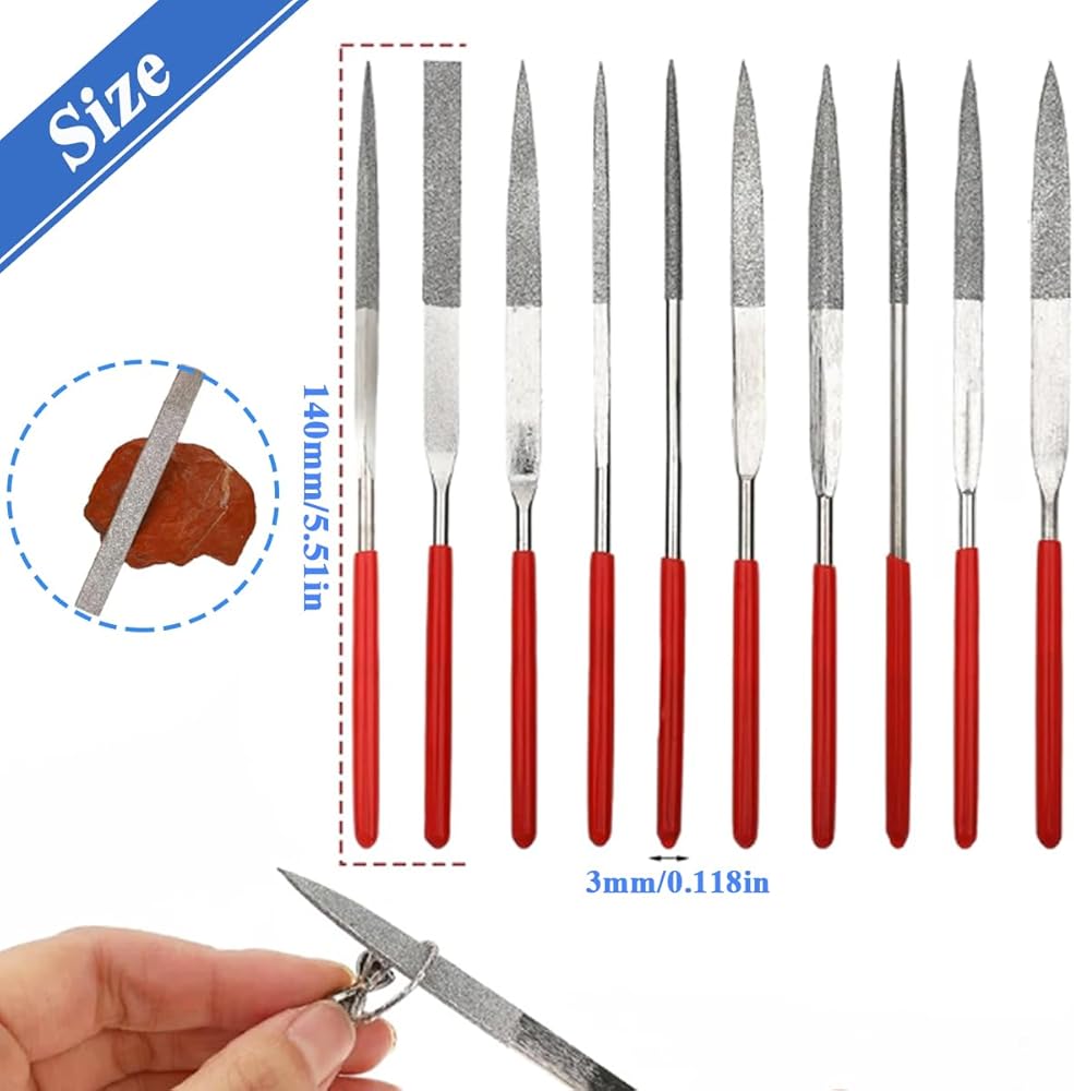 10PCS Diamond File Set – Includes 10 high-quality diamond needle files with a 3x140mm size, perfect for precise metalworking, woodworking, jewelry making, and detailed crafting projects