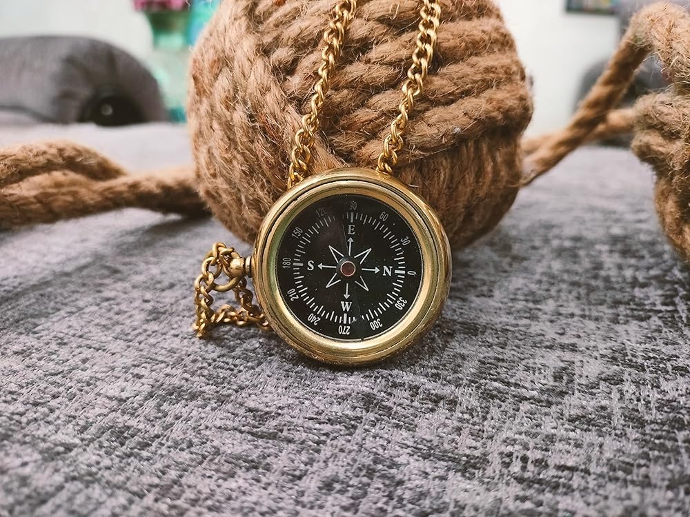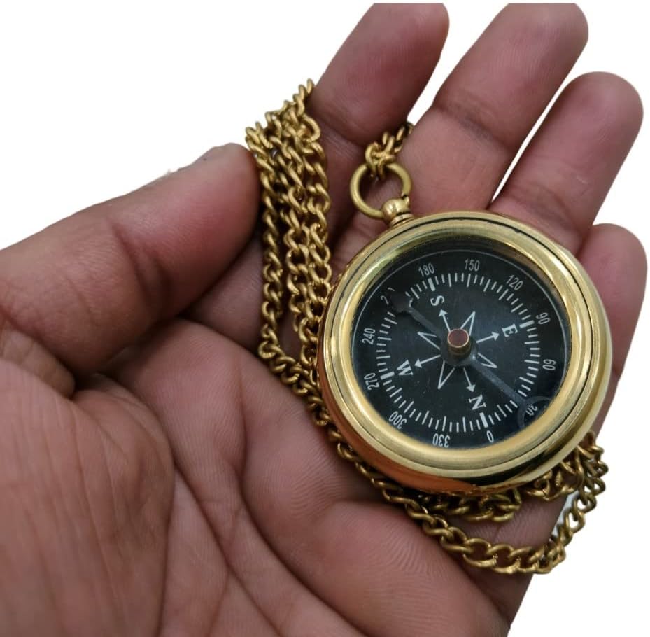 المواصفات: - مصنوعة من النحاس الصلب والمعدن مع سلسلة وطبقة نهائية من النحاس. توفر هذه البوصلة مساعدة اتجاهية دقيقة. بوصلة مدلاة نحاسية لامعة فريدة من نوعها سهلة الارتداء وسهلة الحمل.