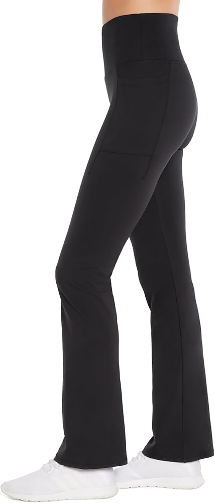 • High-rise pant with 4.5" waistband for full coverage, tummy control, and slimming compression while the bootcut silhouette flatters any figure.