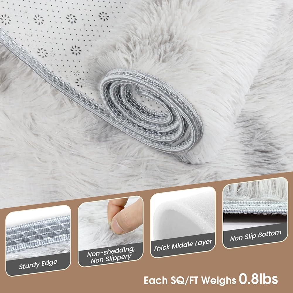 سجادة منطقة أشعث رقيق، سجاد حديث مقاس 4.6x6.5FT لغرفة النوم، سجادة أرضية غير قابلة للانزلاق لغرفة المعيشة، سجاد منطقة قطيفة ناعمة للنوم والحضانة وغرفة الدراسة وغرفة الملابس مصبوغة باللون الرمادي الفاتح