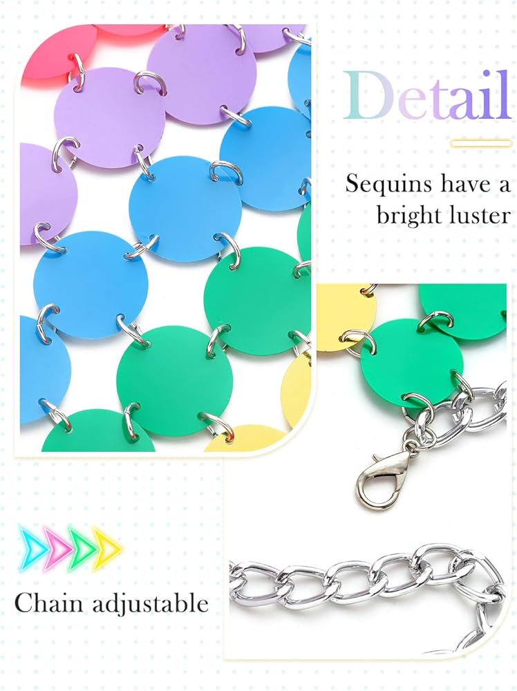 • تنورة سلسلة خصر ملونة مصنوعة من الترتر المنقط وسلسلة من خليط معدني، تنورة السلسلة المثيرة تناسب الزي العادي.