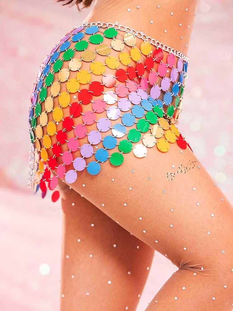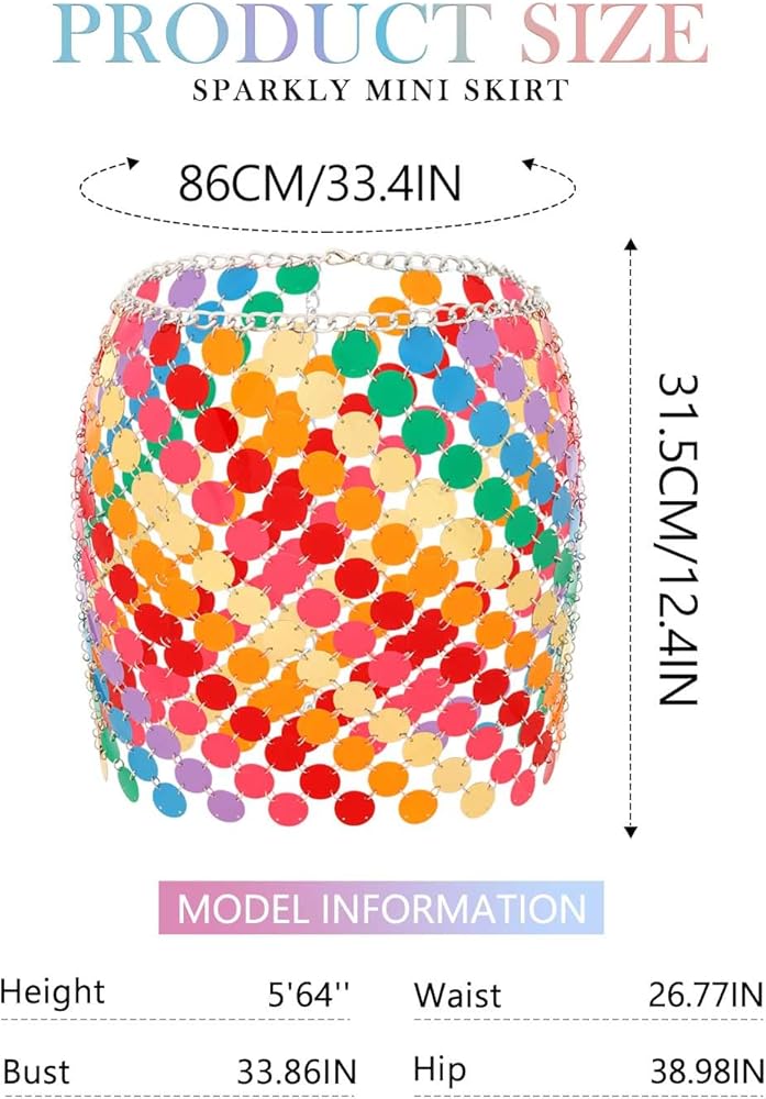 • تنورة بسلسلة مطرزة بالترتر للسيدات هي إكسسوار ممتع للحفلات الراقصة، والنوادي الليلية، والسهرات، والديسكو، والمواعيد الليلية، والمهرجانات الموسيقية، وحفلات الهالوين.